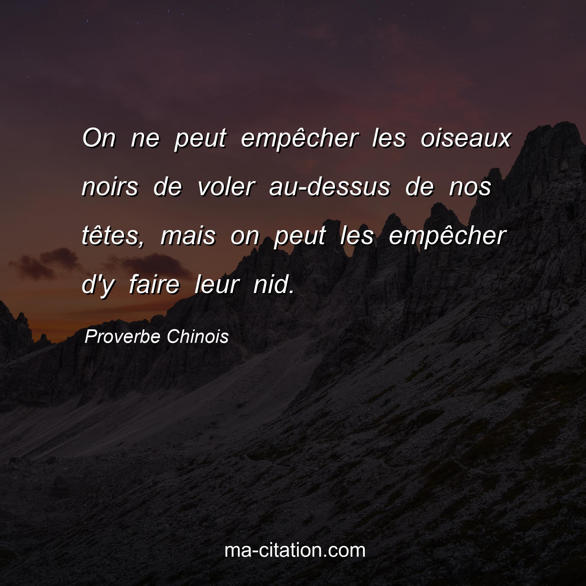Proverbe Chinois sur la vie :On ne peut empêcher les oiseaux noirs de voler au-dessus de nos têtes, mais on peut les empêcher d'y faire leur nid.
