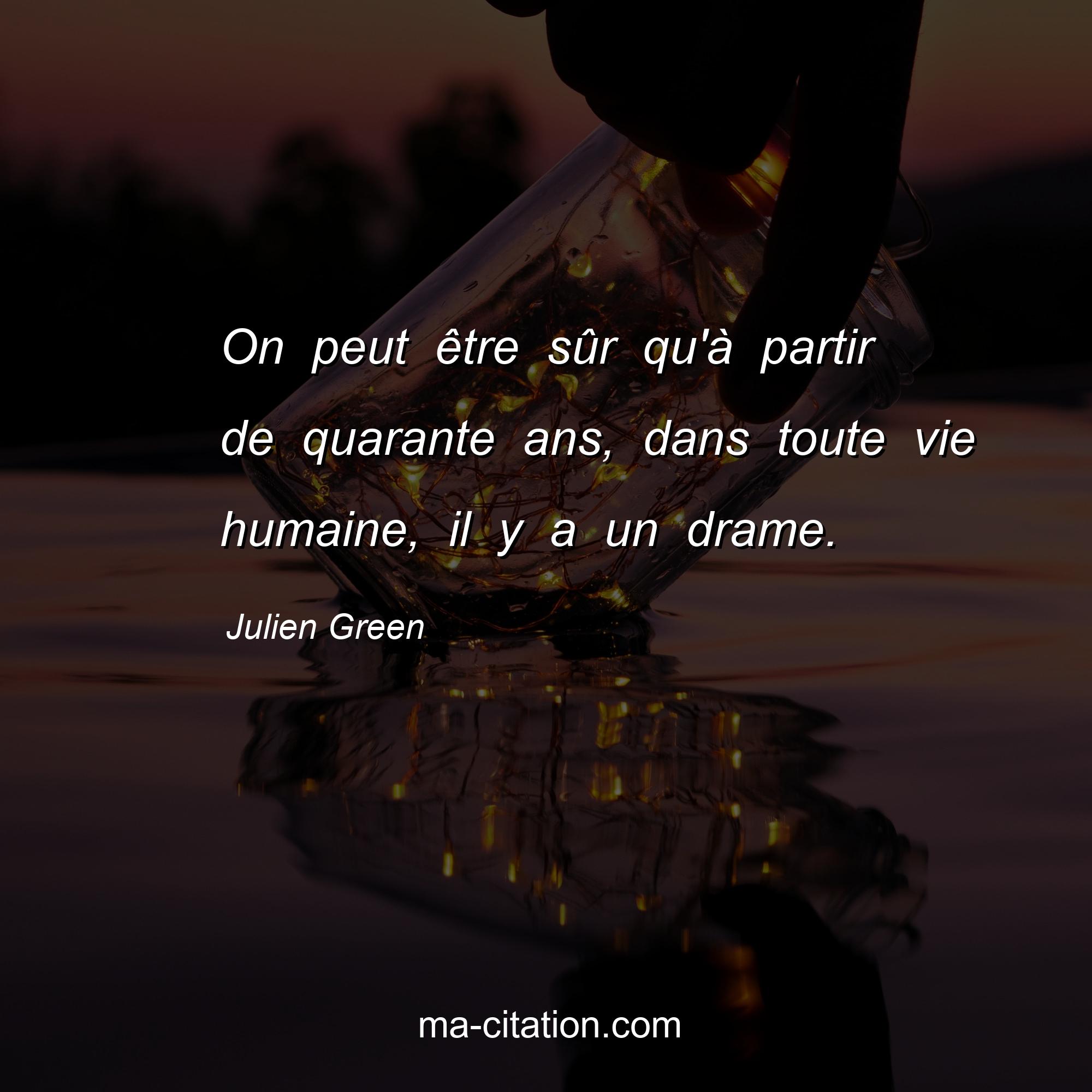 Julien Green est l'auteur de la citation sur la vie "On peut être sûr qu'à partir de quarante ans, dans toute vie humaine, il y a un drame.".