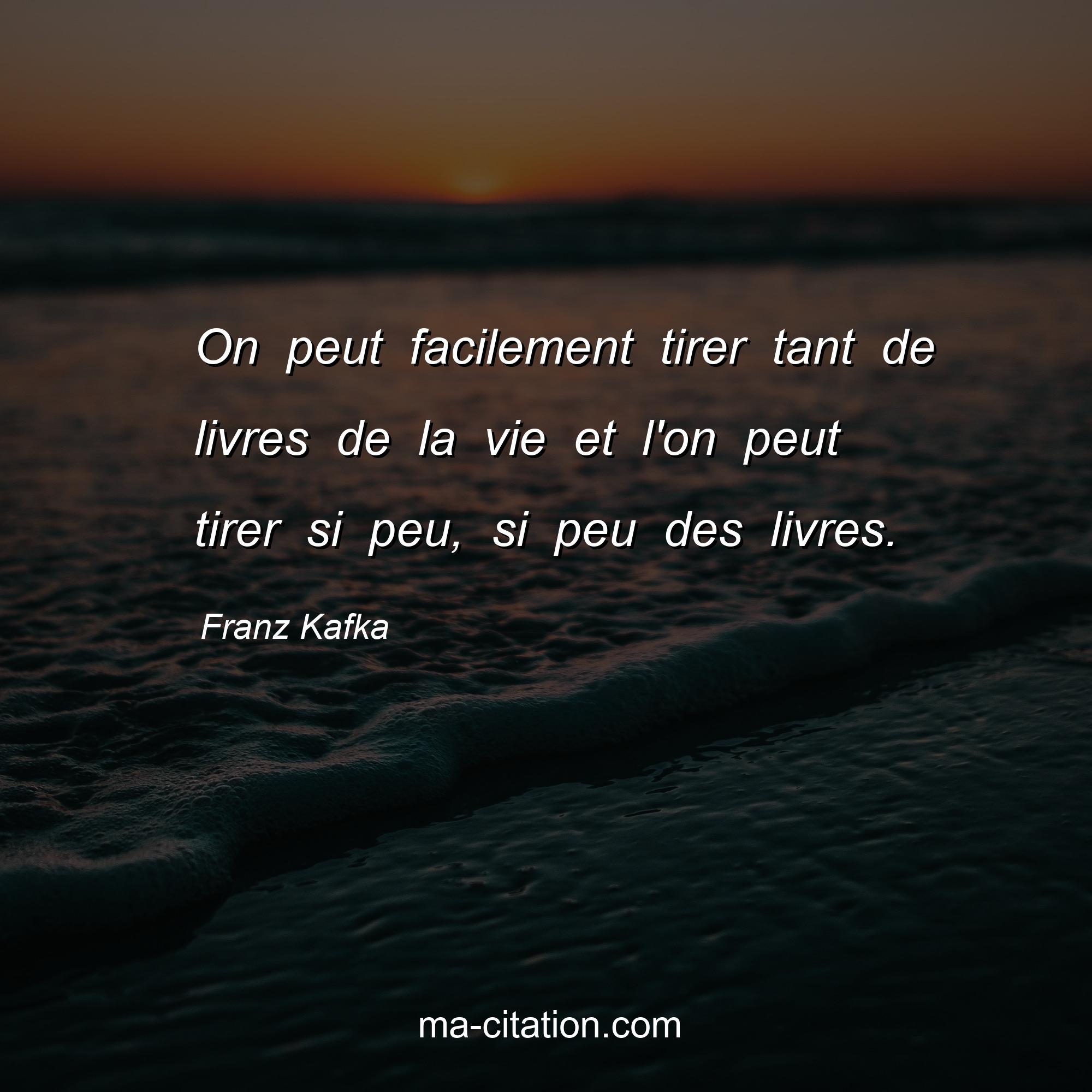 Citation sur la vie de Franz Kafka :On peut facilement tirer tant de livres de la vie et l'on peut tirer si peu, si peu des livres.