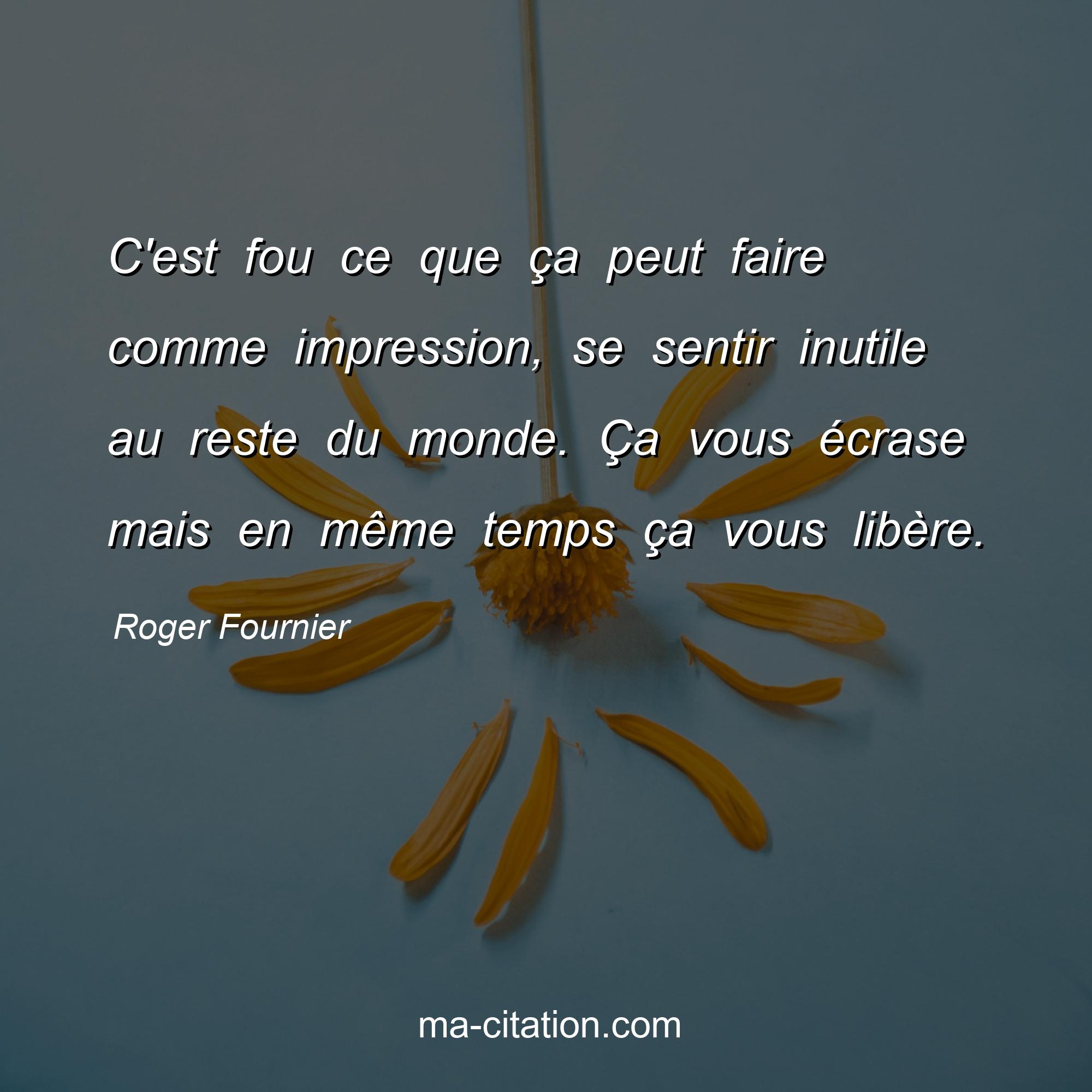 Roger Fournier est l'auteur de la citation sur la vie "C'est fou ce que ça peut faire comme impression, se sentir inutile au reste du monde. Ça vous écrase mais en même temps ça vous libère.".