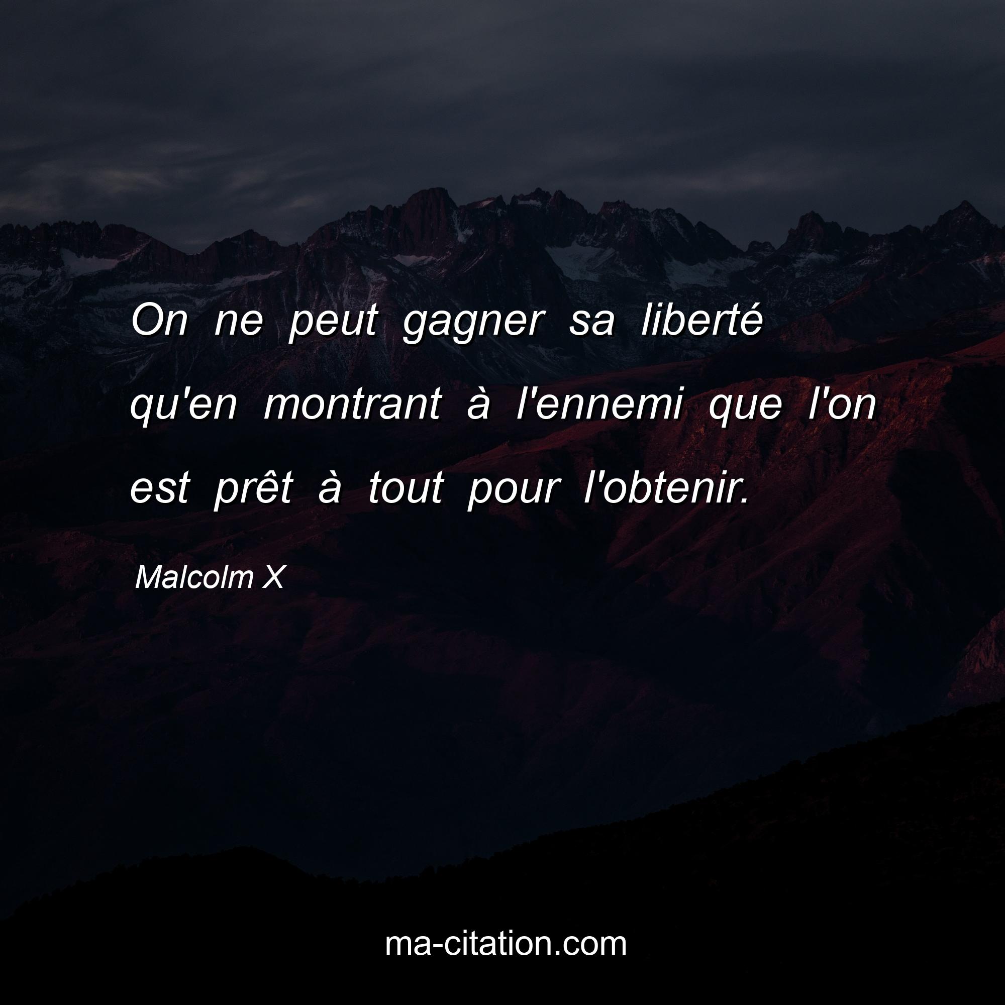 Malcolm X est l'auteur de la citation sur la vie "On ne peut gagner sa liberté qu'en montrant à l'ennemi que l'on est prêt à tout pour l'obtenir.".