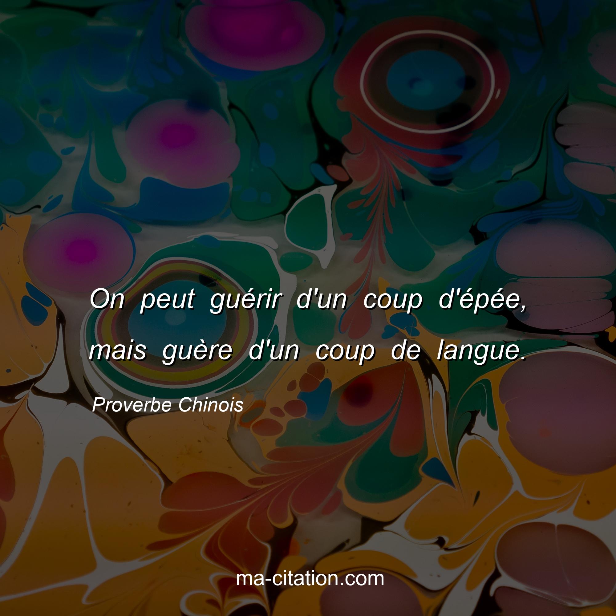 Proverbe Chinois sur la vie :On peut guérir d'un coup d'épée, mais guère d'un coup de langue.
