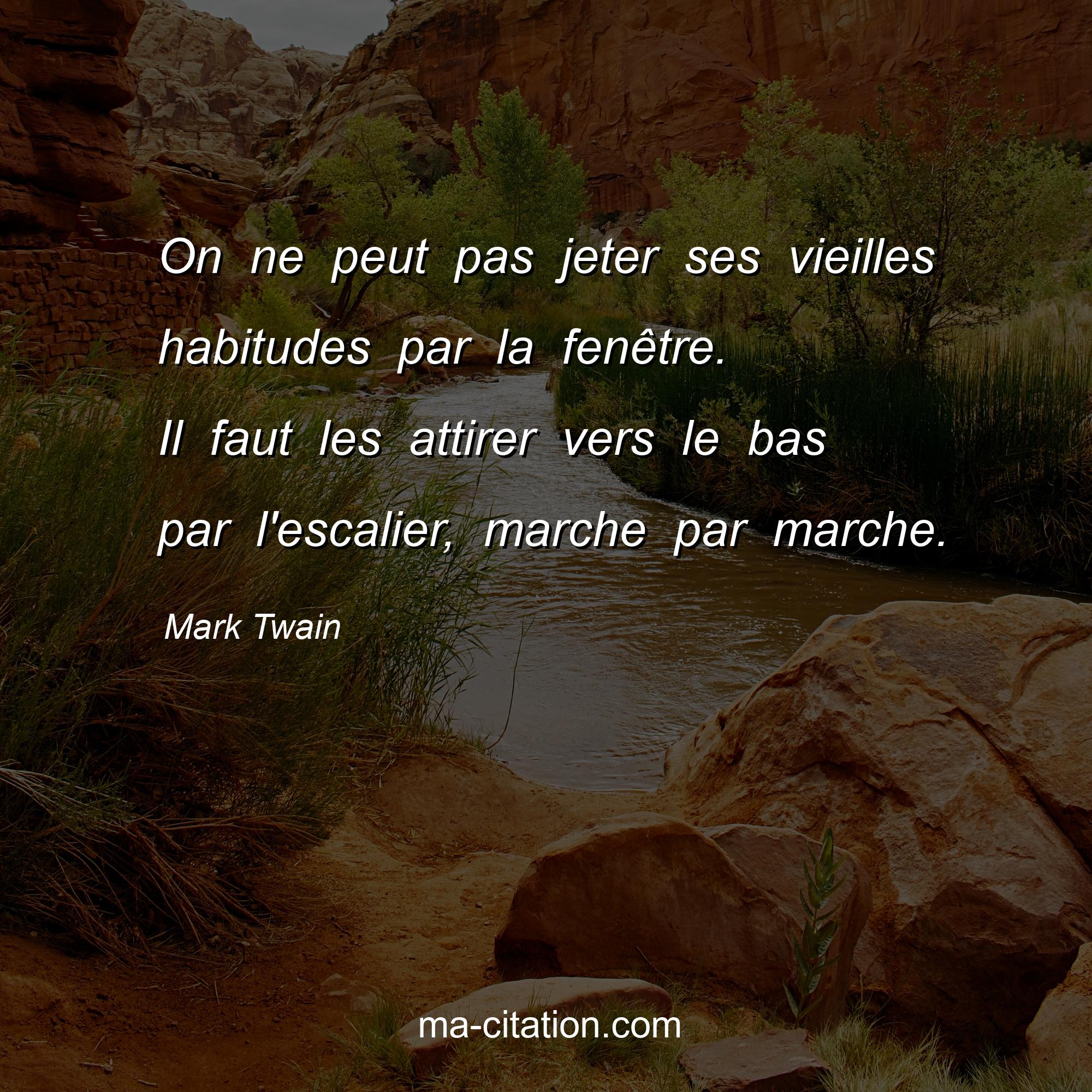 Citation sur la vie de Mark Twain :On ne peut pas jeter ses vieilles habitudes par la fenêtre. Il faut les attirer vers le bas par l'escalier, marche par marche.