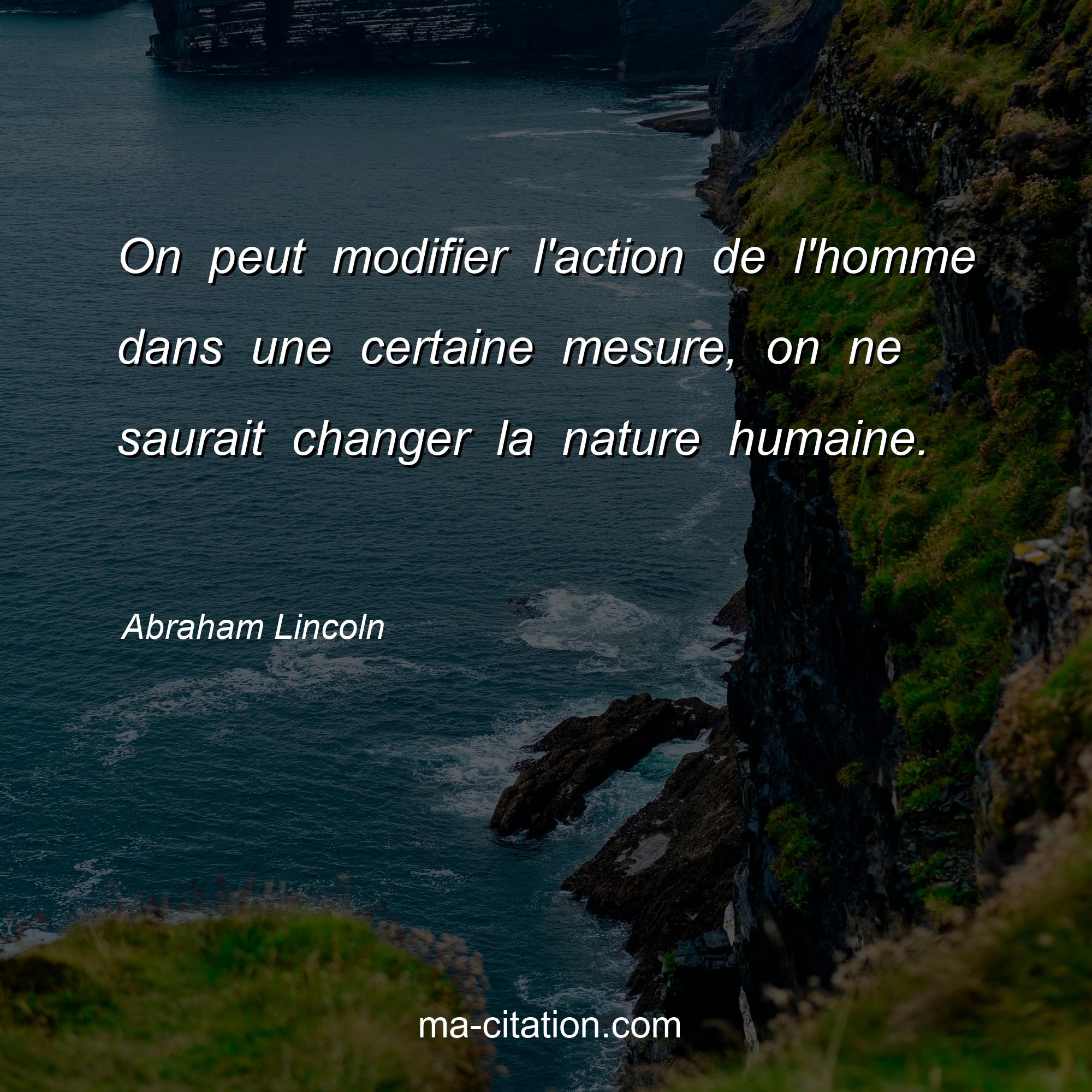 Citation sur la vie d'Abraham Lincoln :On peut modifier l'action de l'homme dans une certaine mesure, on ne saurait changer la nature humaine.