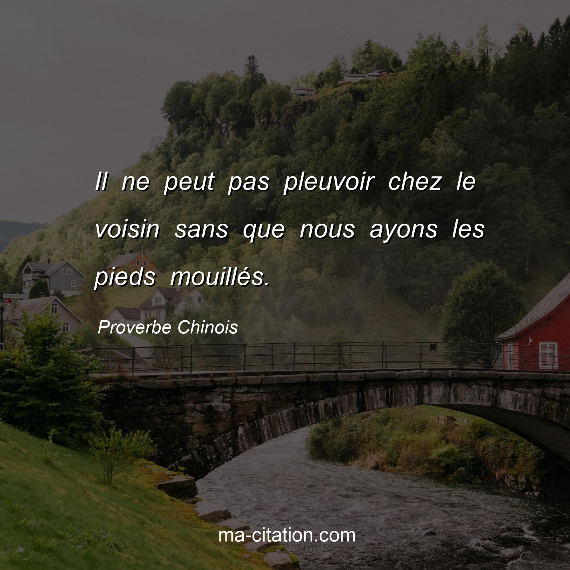 Proverbe Chinois sur la vie :Il ne peut pas pleuvoir chez le voisin sans que nous ayons les pieds mouillés.