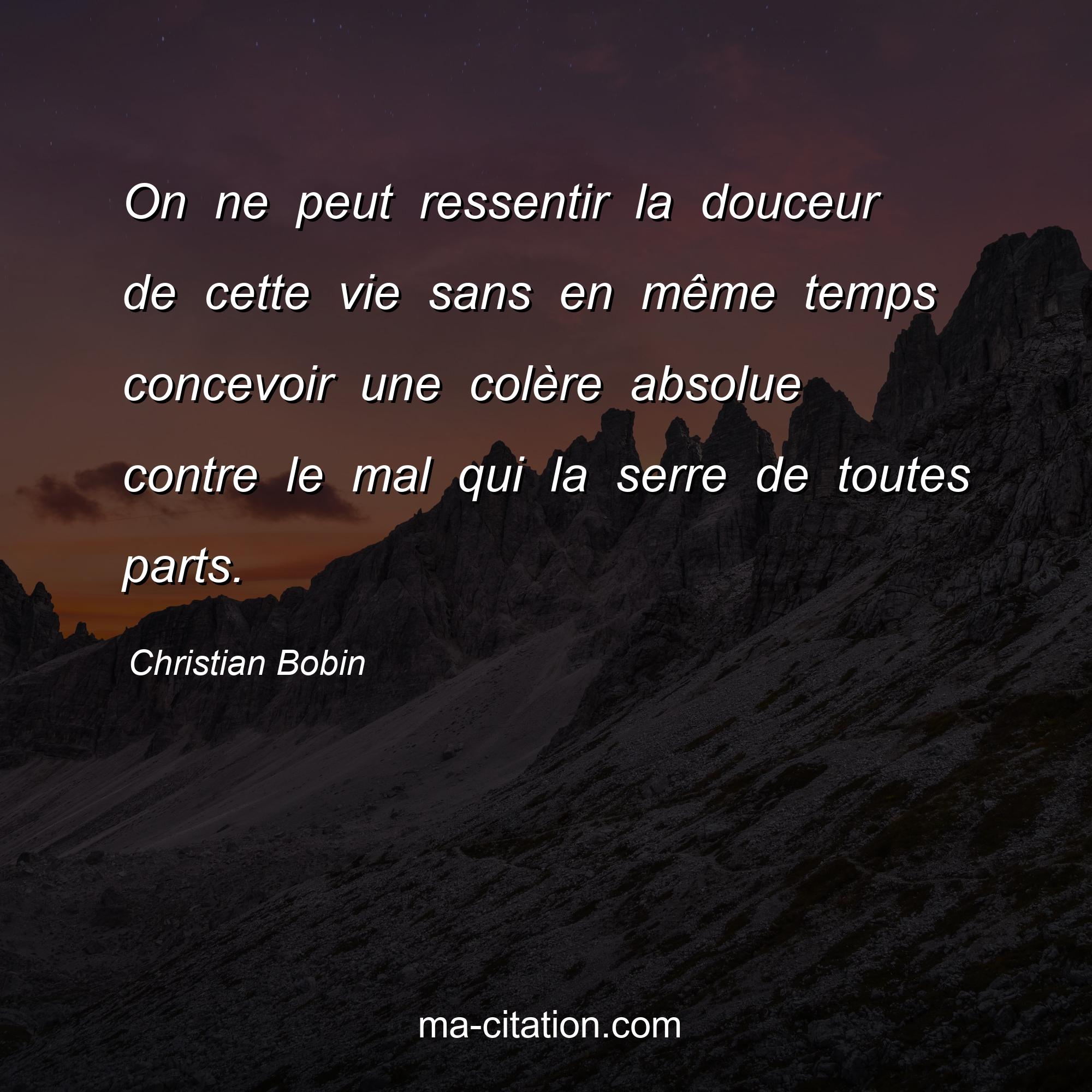 Citation sur la vie de Christian Bobin :On ne peut ressentir la douceur de cette vie sans en même temps concevoir une colère absolue contre le mal qui la serre de toutes parts.