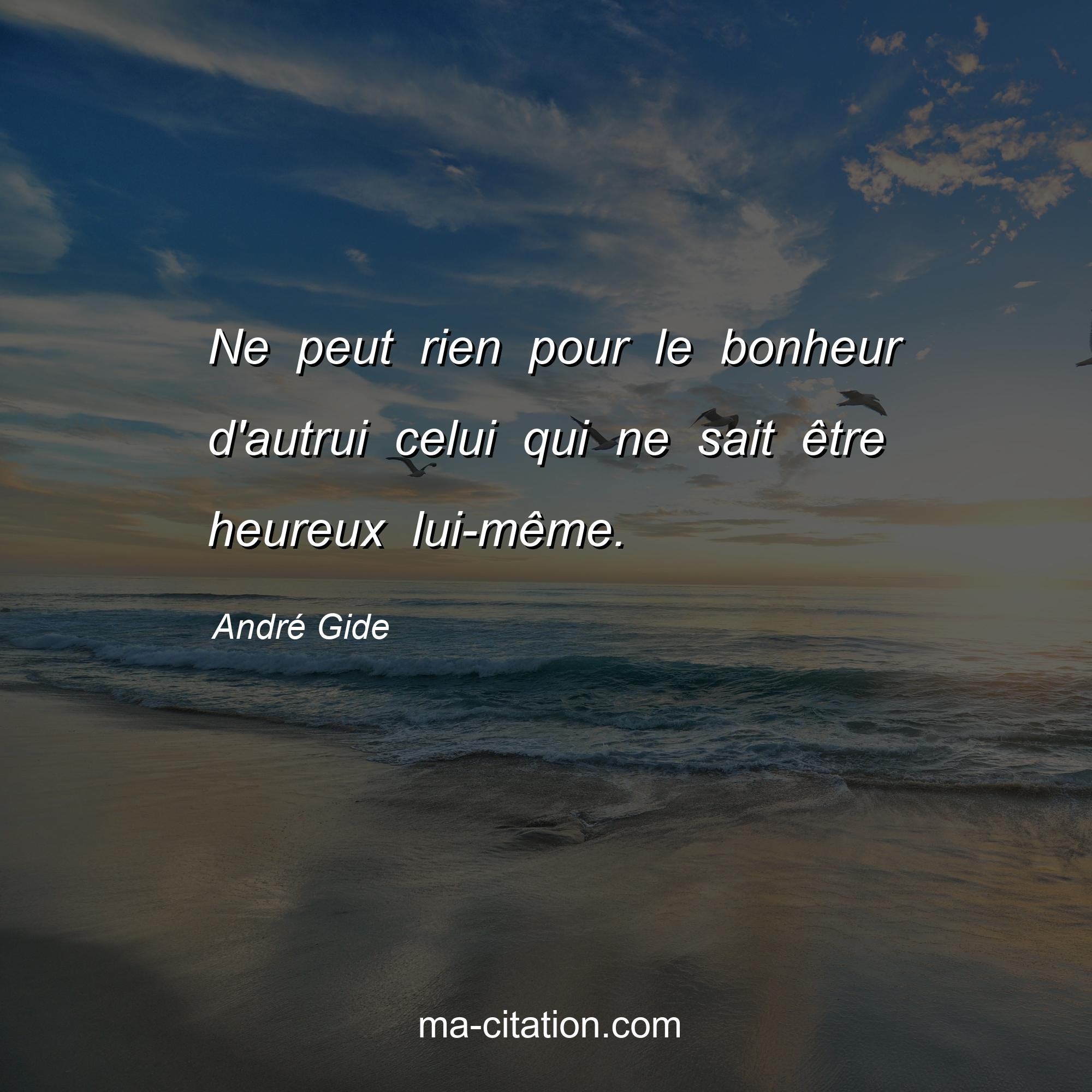 Citation sur la vie d'André Gide :Ne peut rien pour le bonheur d'autrui celui qui ne sait être heureux lui-même.