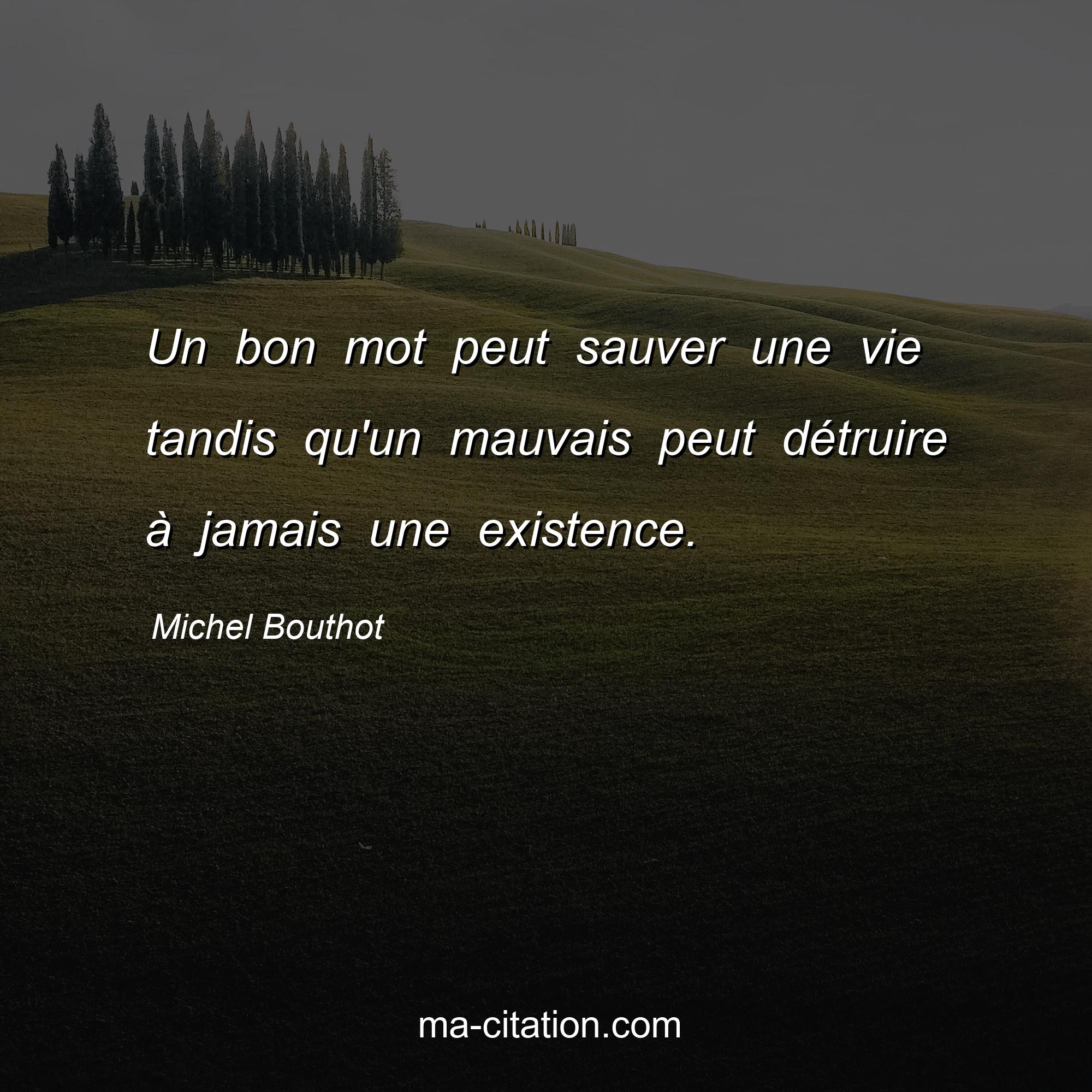Michel Bouthot est l'auteur de la citation sur la vie "Un bon mot peut sauver une vie tandis qu'un mauvais peut détruire à jamais une existence.".
