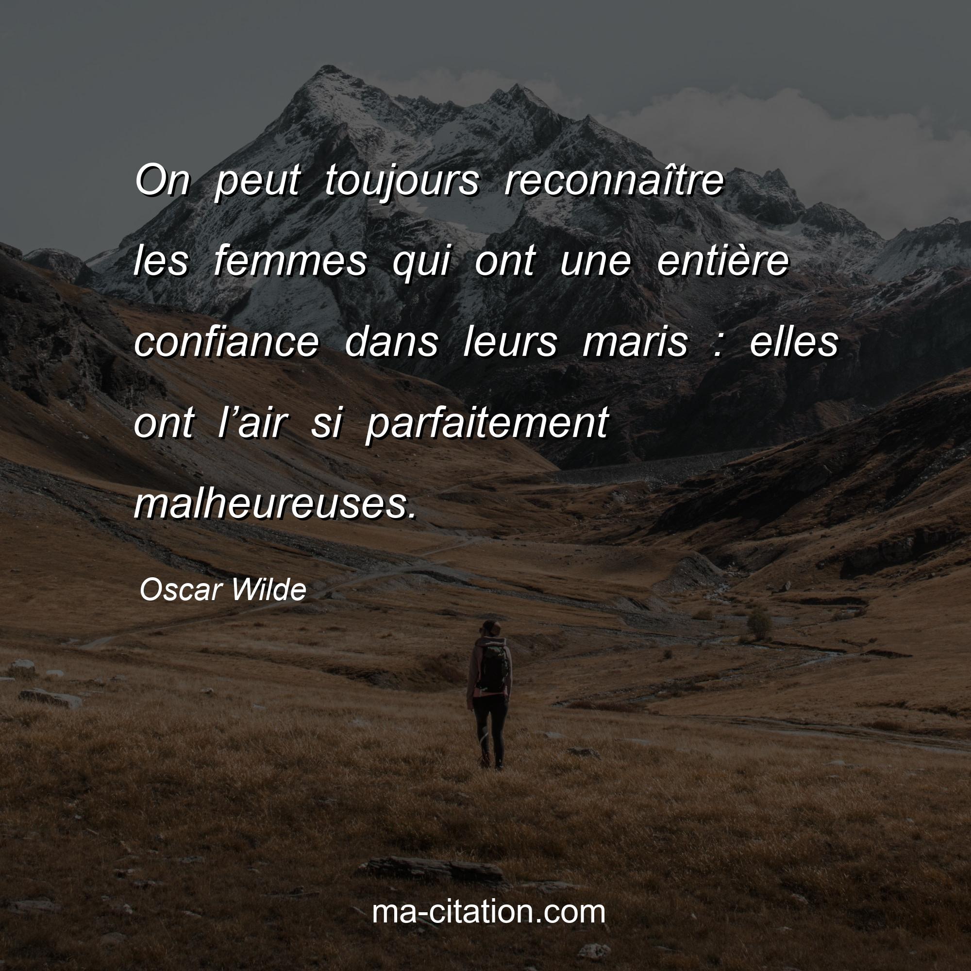 Citation sur la vie d'Oscar Wilde :On peut toujours reconnaître les femmes qui ont une entière confiance dans leurs maris : elles ont l’air si parfaitement malheureuses.