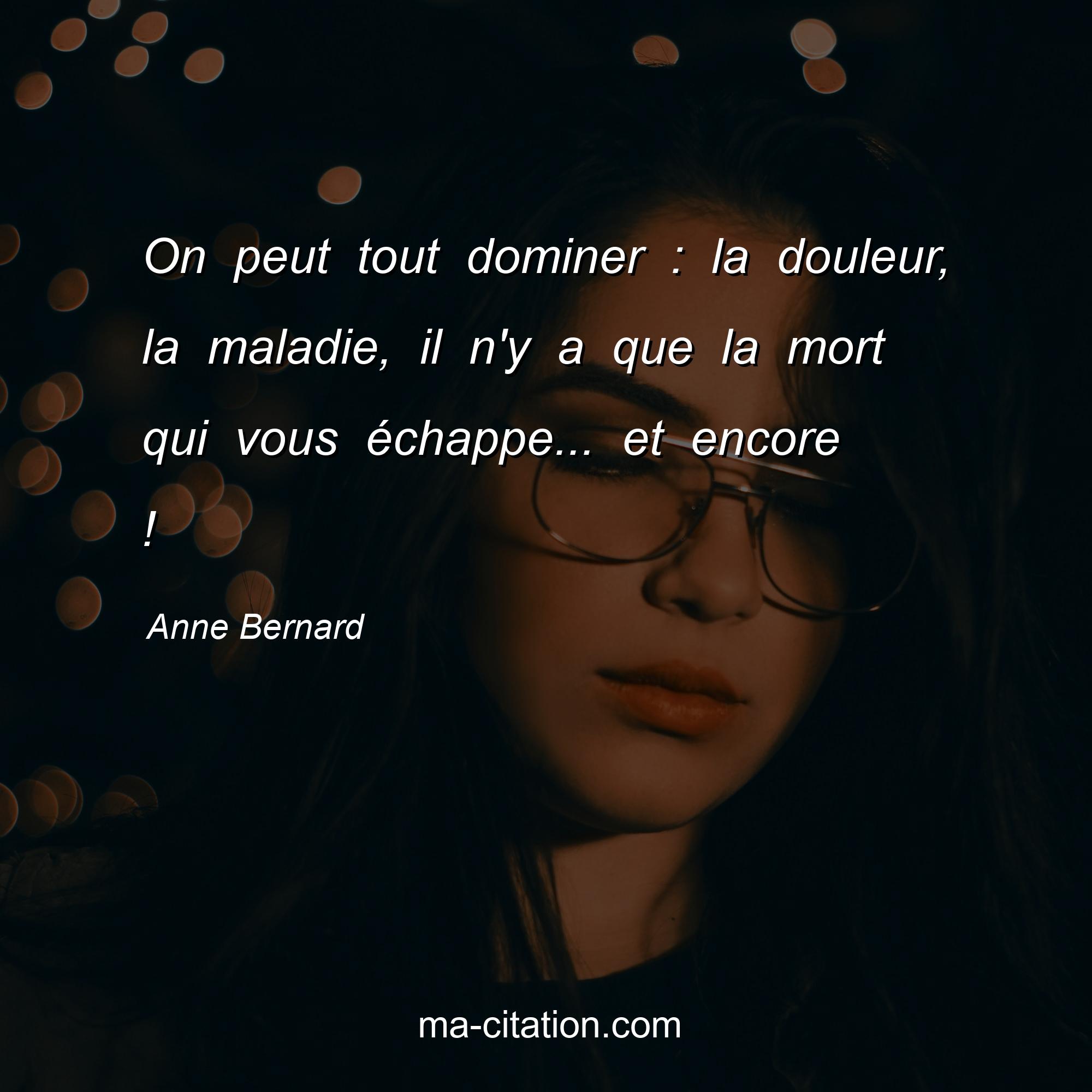 Anne Bernard est l'auteur de la citation sur la vie "On peut tout dominer : la douleur, la maladie, il n'y a que la mort qui vous échappe... et encore !".