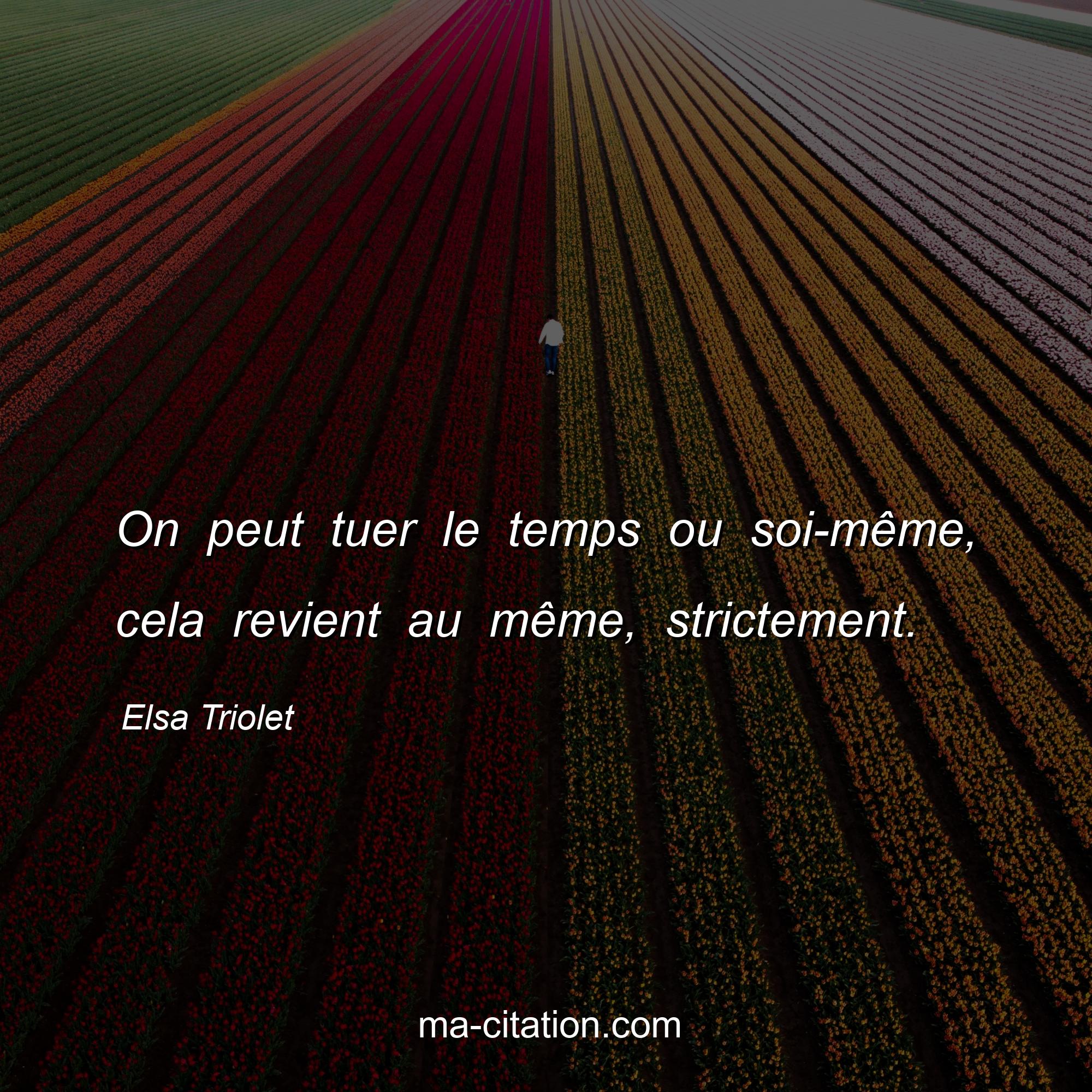 Citation sur la vie d'Elsa Triolet :On peut tuer le temps ou soi-même, cela revient au même, strictement.