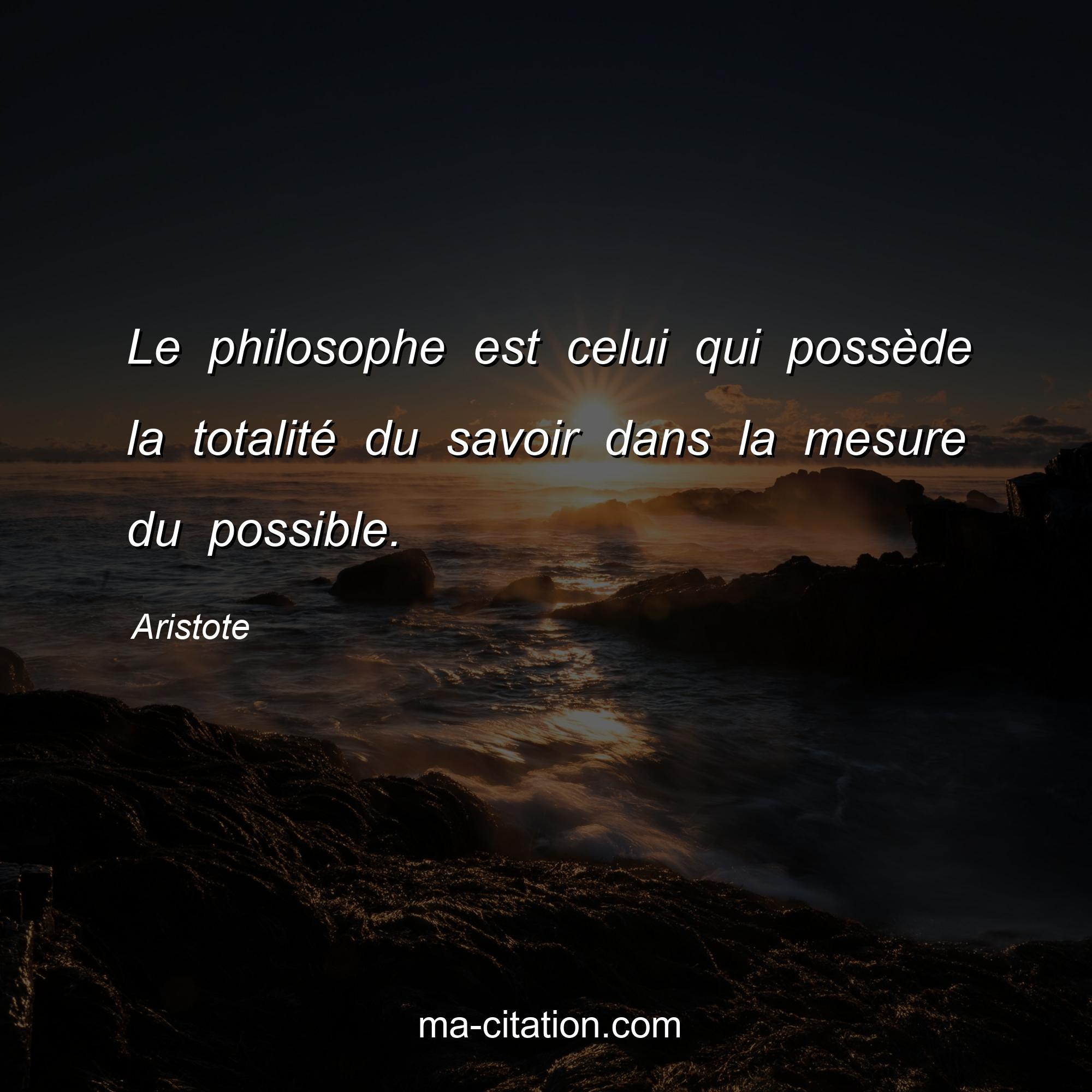 Le philosophe est celui qui possède la totalité du savoir dans la mesure du possible.