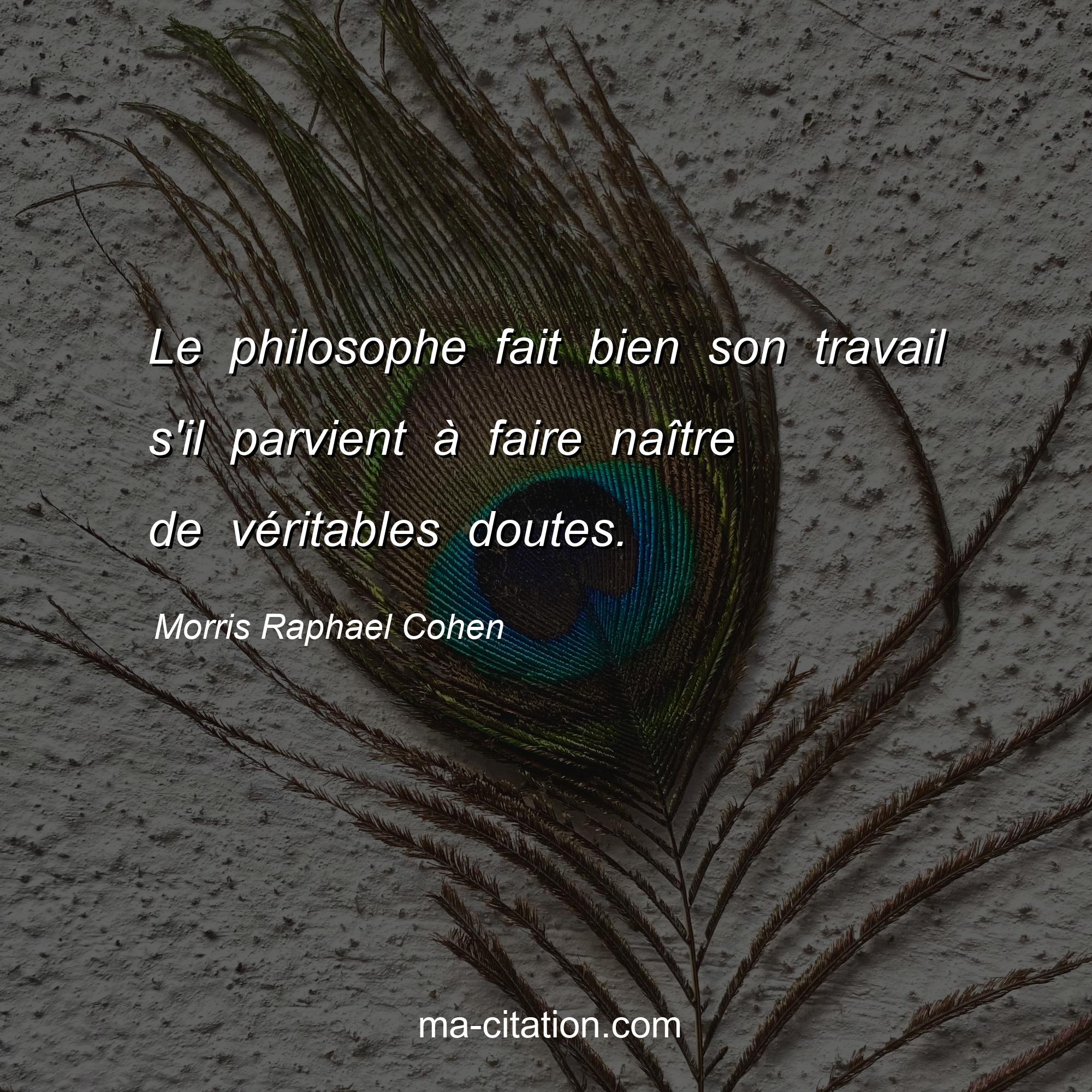 Citation sur la vie de Morris Raphael Cohen :Le philosophe fait bien son travail s'il parvient à faire naître de véritables doutes.