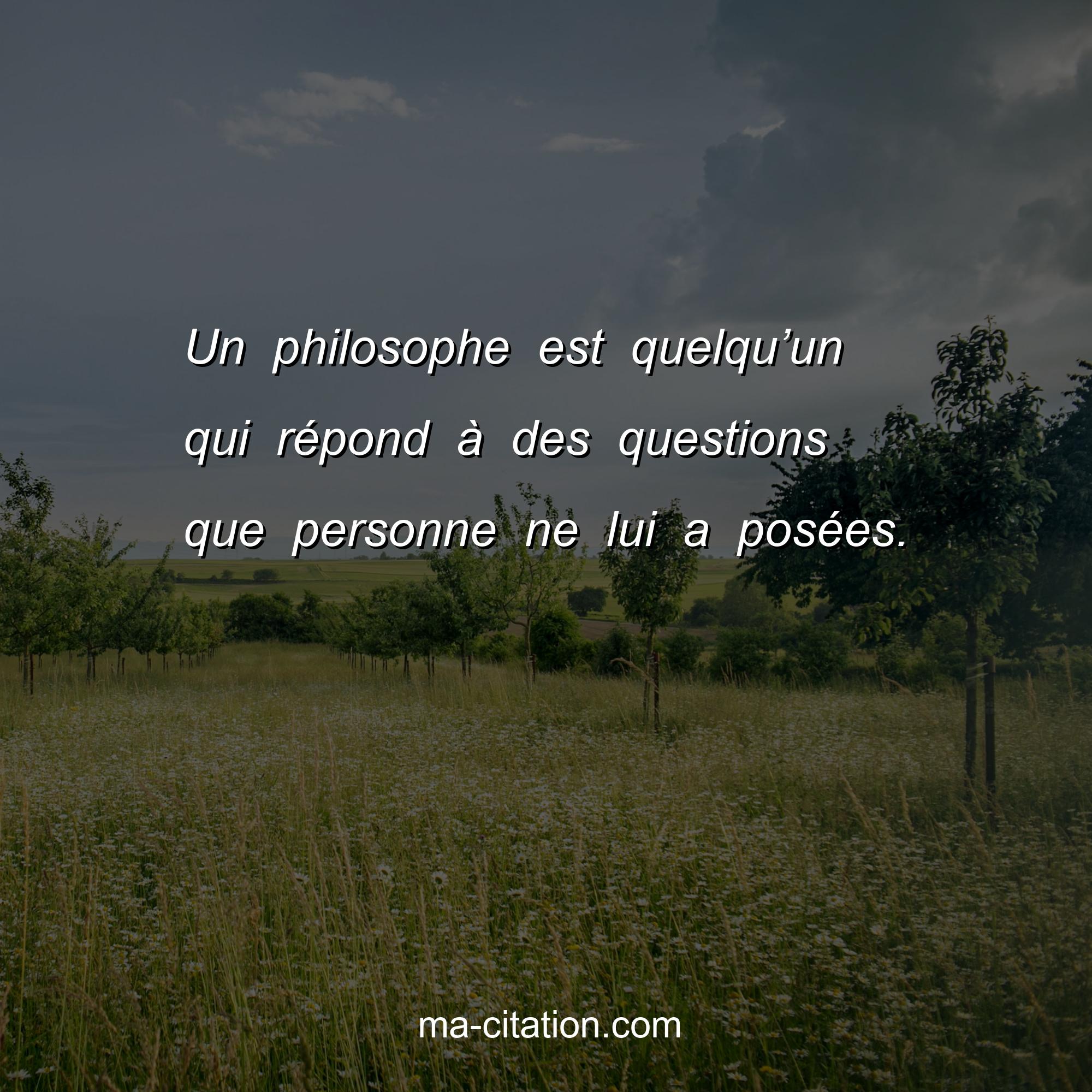 Un philosophe est quelqu’un qui répond à des questions que personne ne lui a posées.