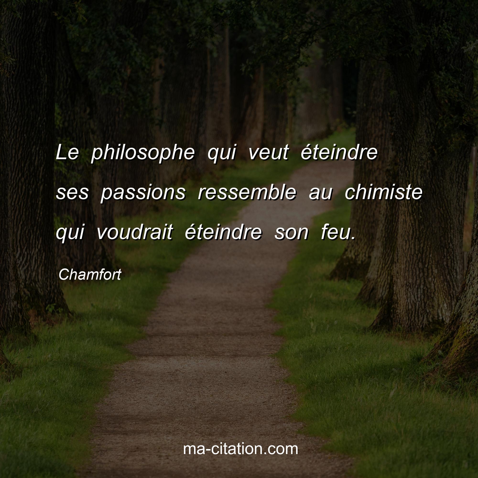 Citation sur la vie de Chamfort :Le philosophe qui veut éteindre ses passions ressemble au chimiste qui voudrait éteindre son feu.