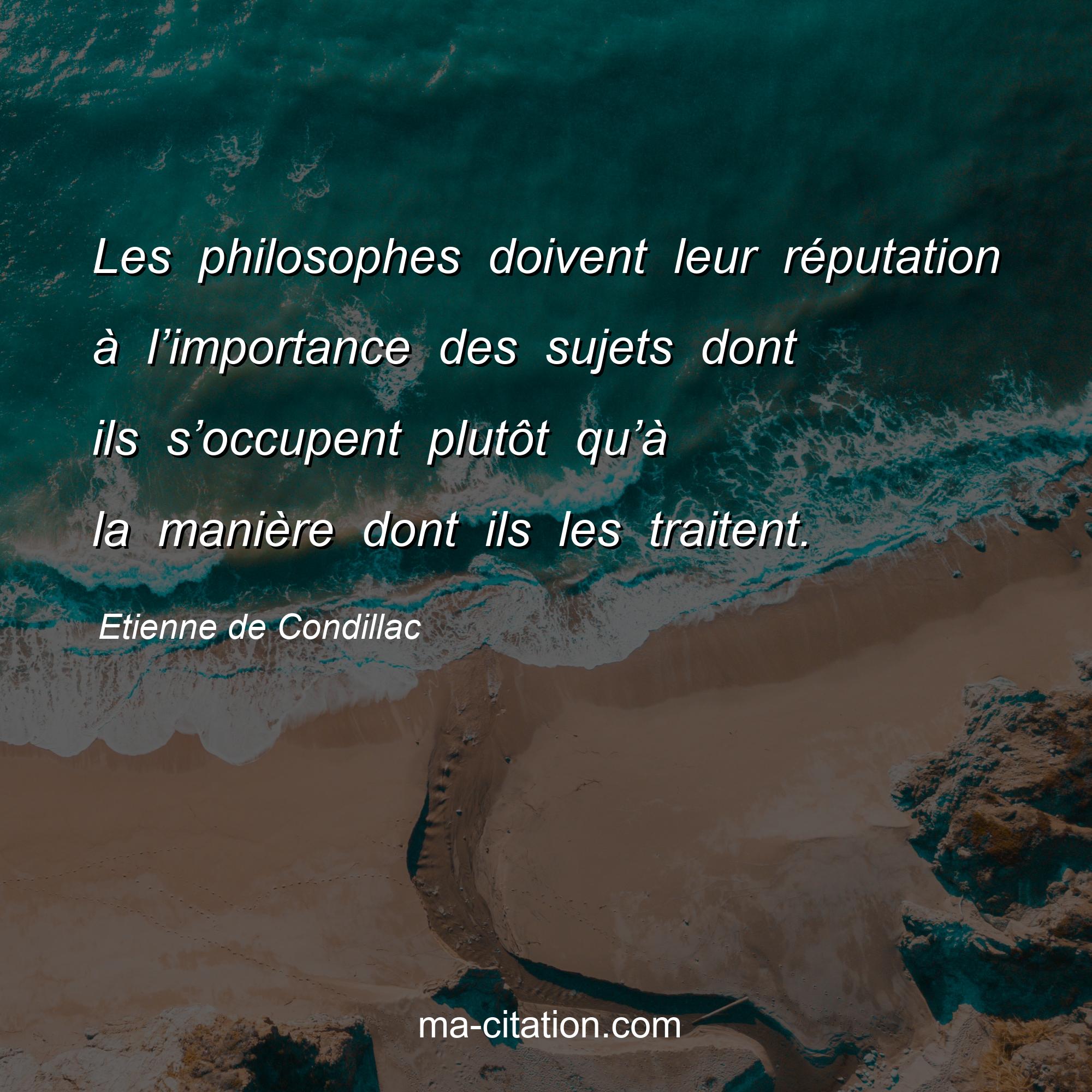 Citation sur la vie d'Etienne de Condillac :Les philosophes doivent leur réputation à l’importance des sujets dont ils s’occupent plutôt qu’à la manière dont ils les traitent.