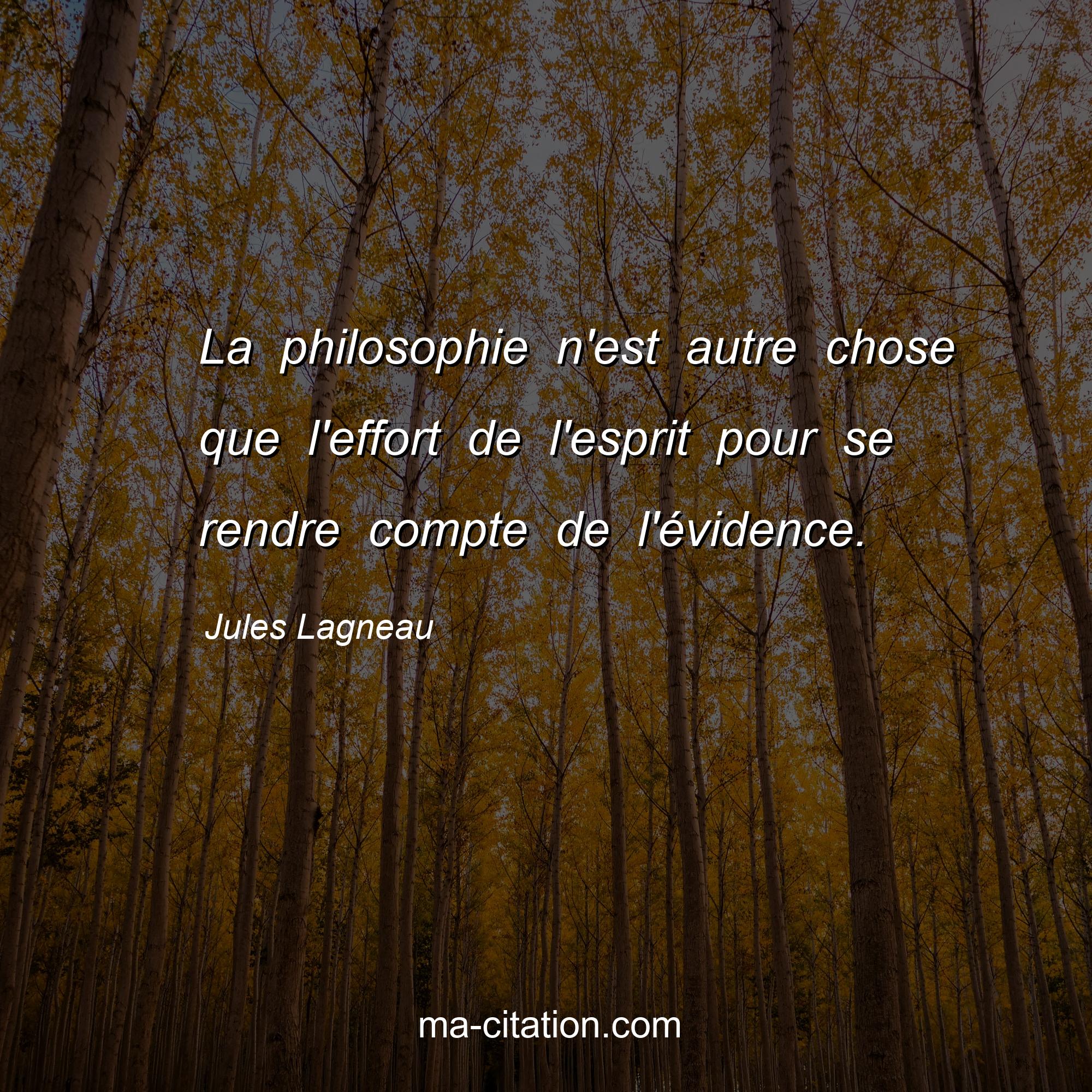 Citation sur la vie de Jules Lagneau :La philosophie n'est autre chose que l'effort de l'esprit pour se rendre compte de l'évidence.