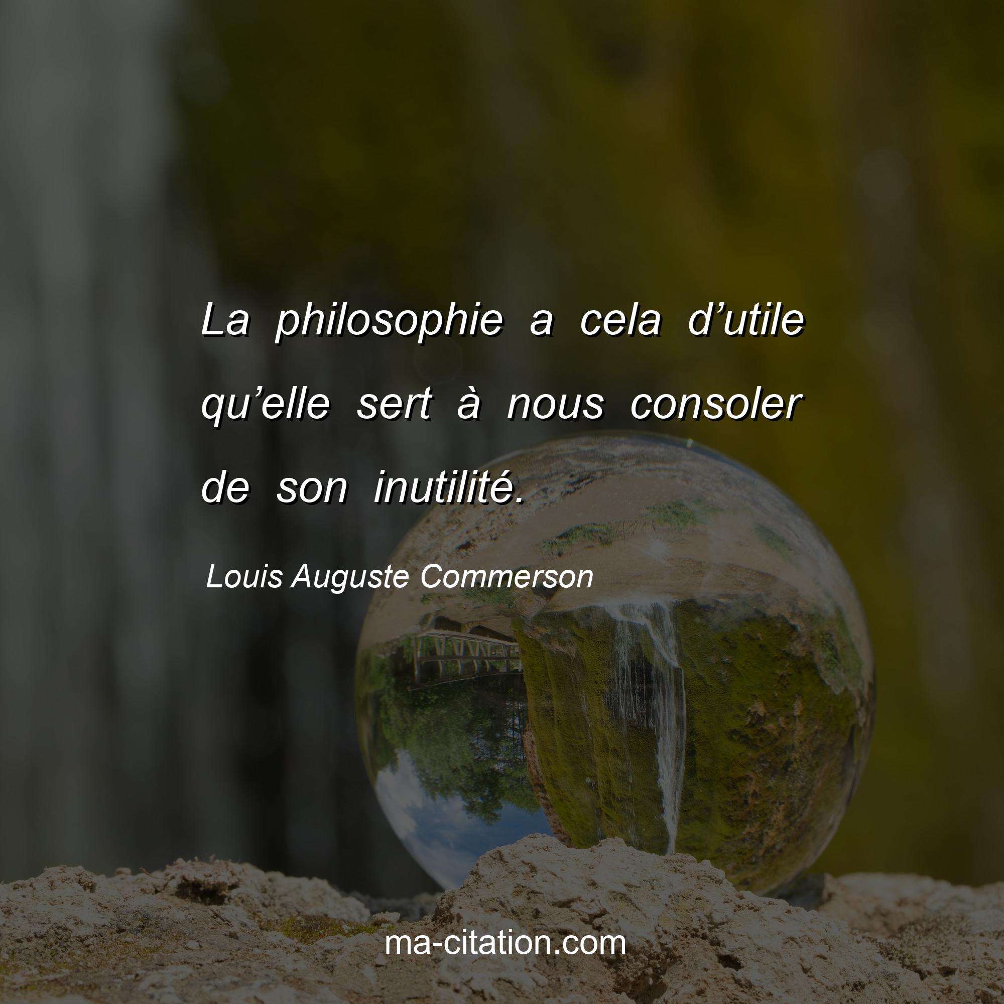 Citation sur la vie de Louis Auguste Commerson :La philosophie a cela d’utile qu’elle sert à nous consoler de son inutilité.