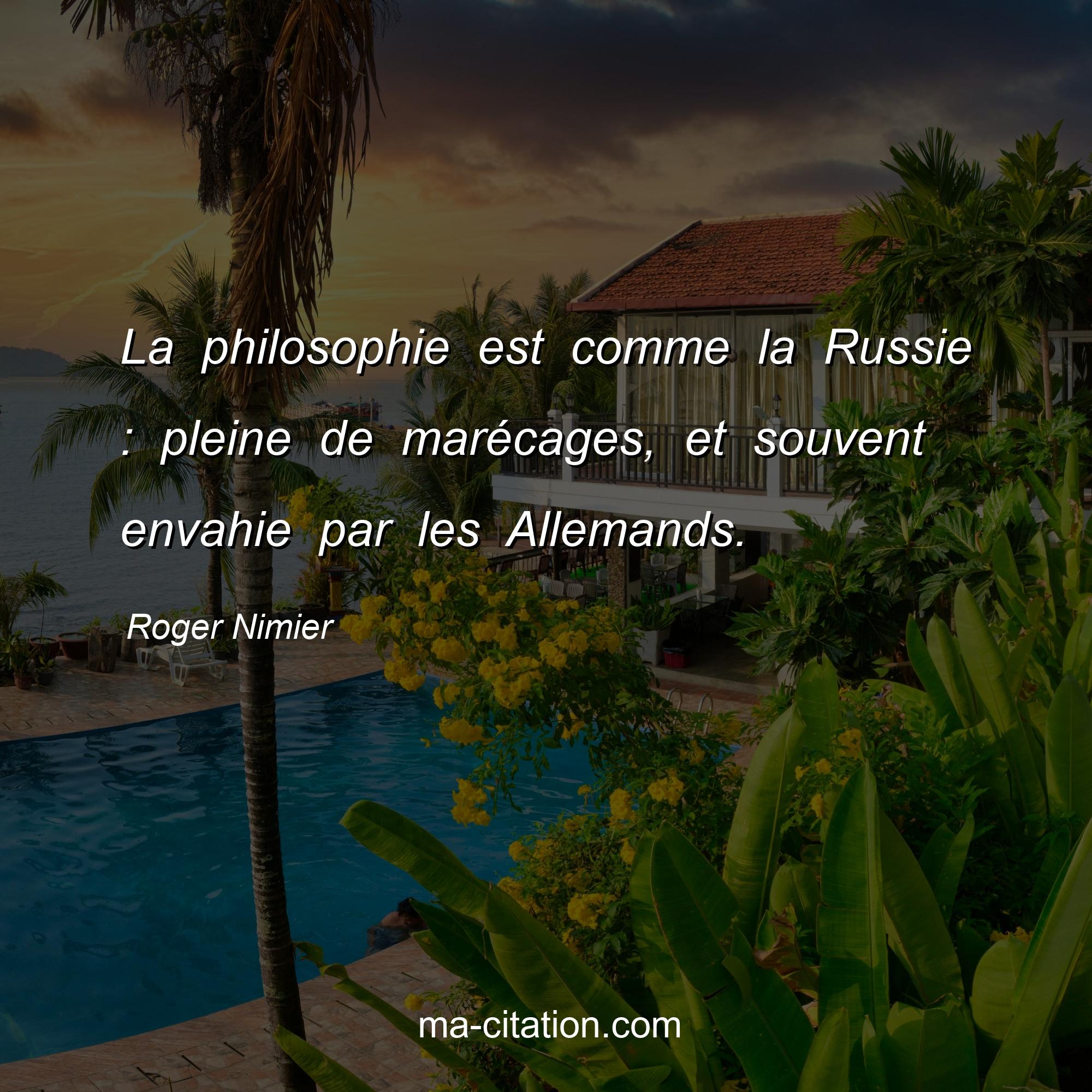 Citation sur la vie de Roger Nimier :La philosophie est comme la Russie : pleine de marécages, et souvent envahie par les Allemands.