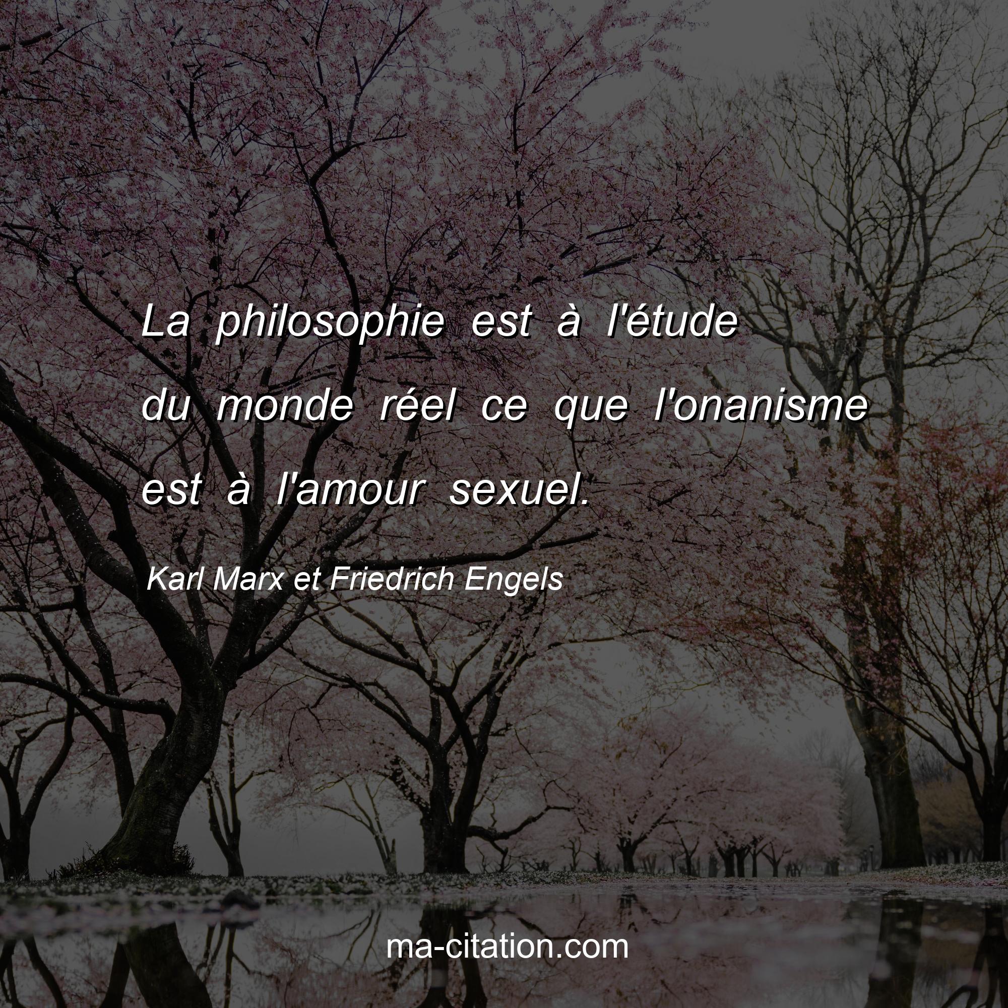 Citation sur la vie de Karl Marx et Friedrich Engels :La philosophie est à l'étude du monde réel ce que l'onanisme est à l'amour sexuel.