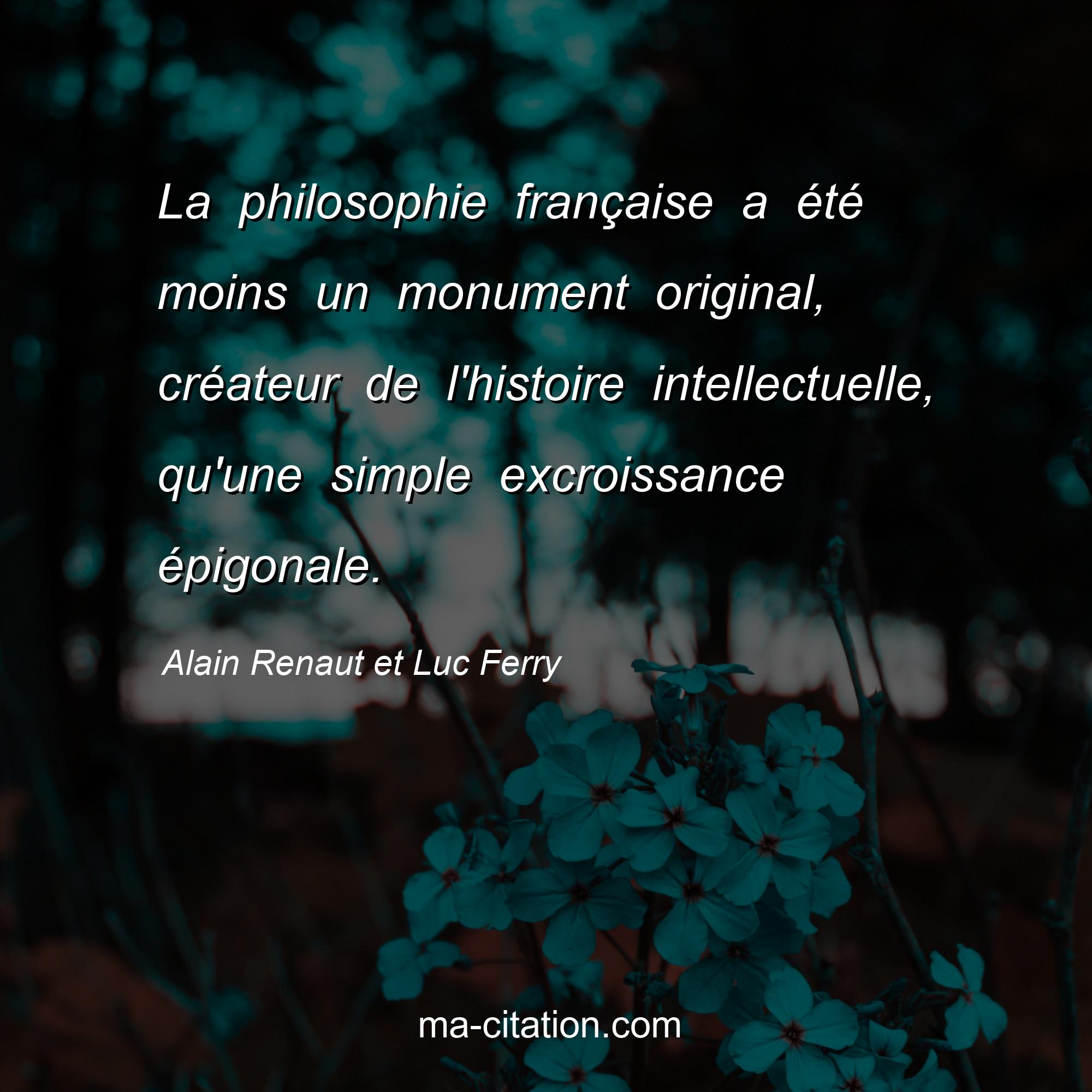 Citation sur la vie d'Alain Renaut et Luc Ferry :La philosophie française a été moins un monument original, créateur de l'histoire intellectuelle, qu'une simple excroissance épigonale.
