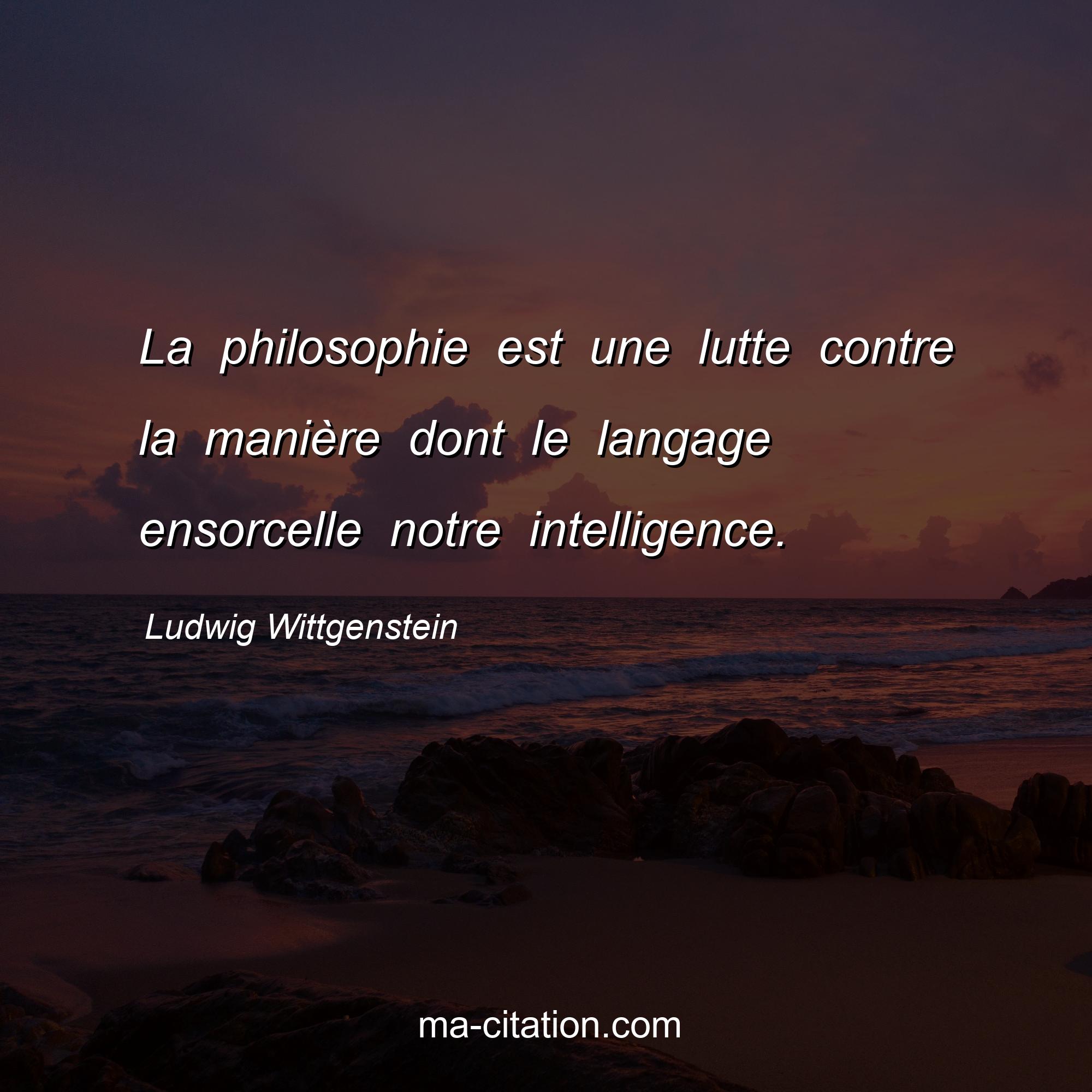 Citation sur la vie de Ludwig Wittgenstein :La philosophie est une lutte contre la manière dont le langage ensorcelle notre intelligence.