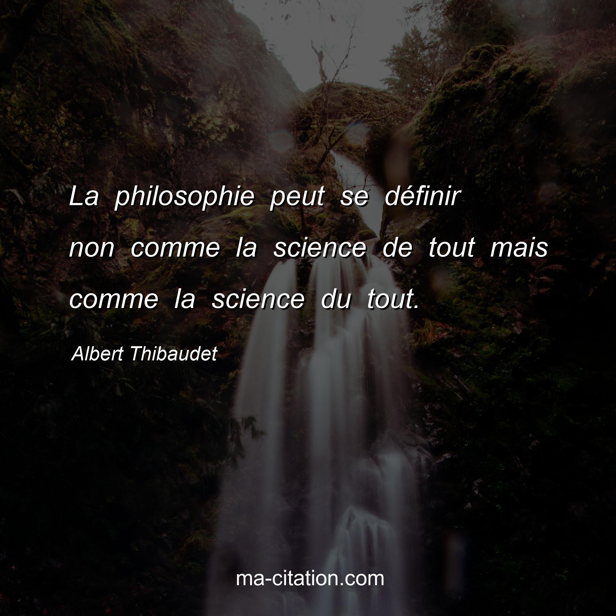 Citation sur la vie d'Albert Thibaudet :La philosophie peut se définir non comme la science de tout mais comme la science du tout.
