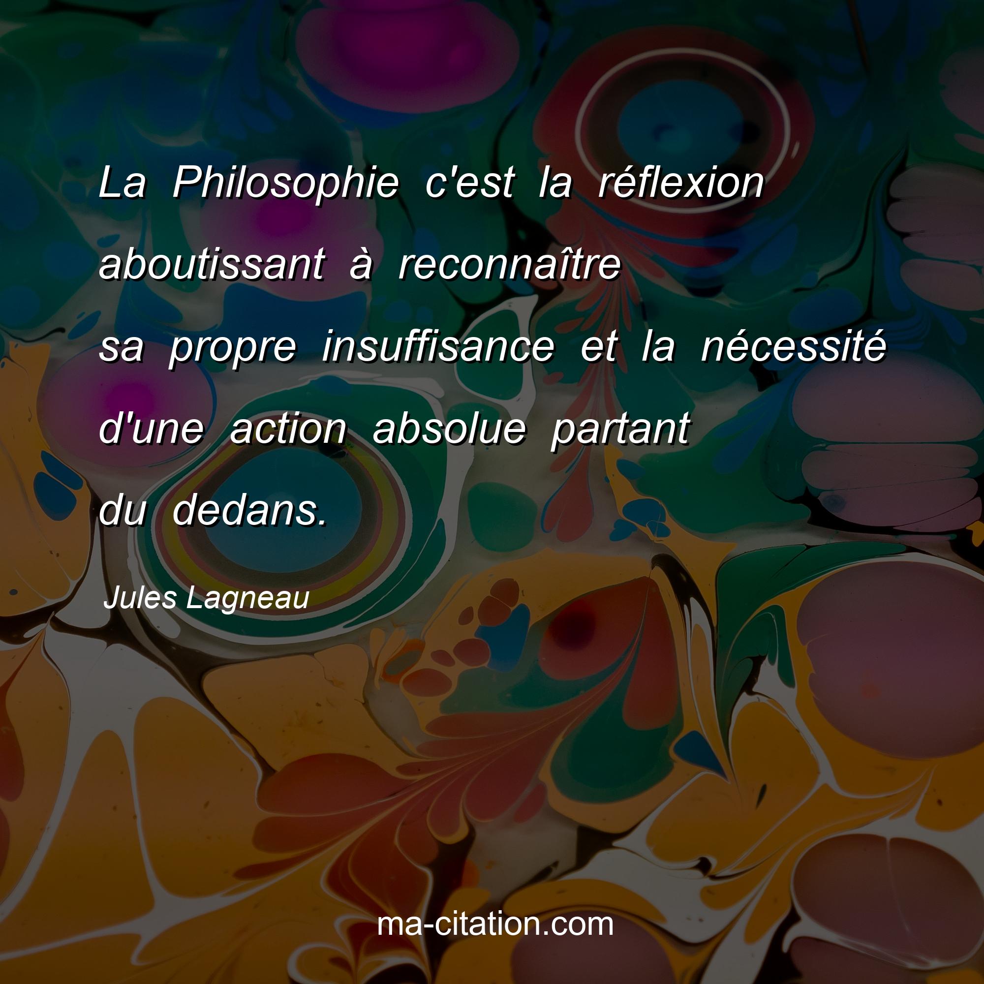 Citation sur la vie de Jules Lagneau :La Philosophie c'est la réflexion aboutissant à reconnaître sa propre insuffisance et la nécessité d'une action absolue partant du dedans.
