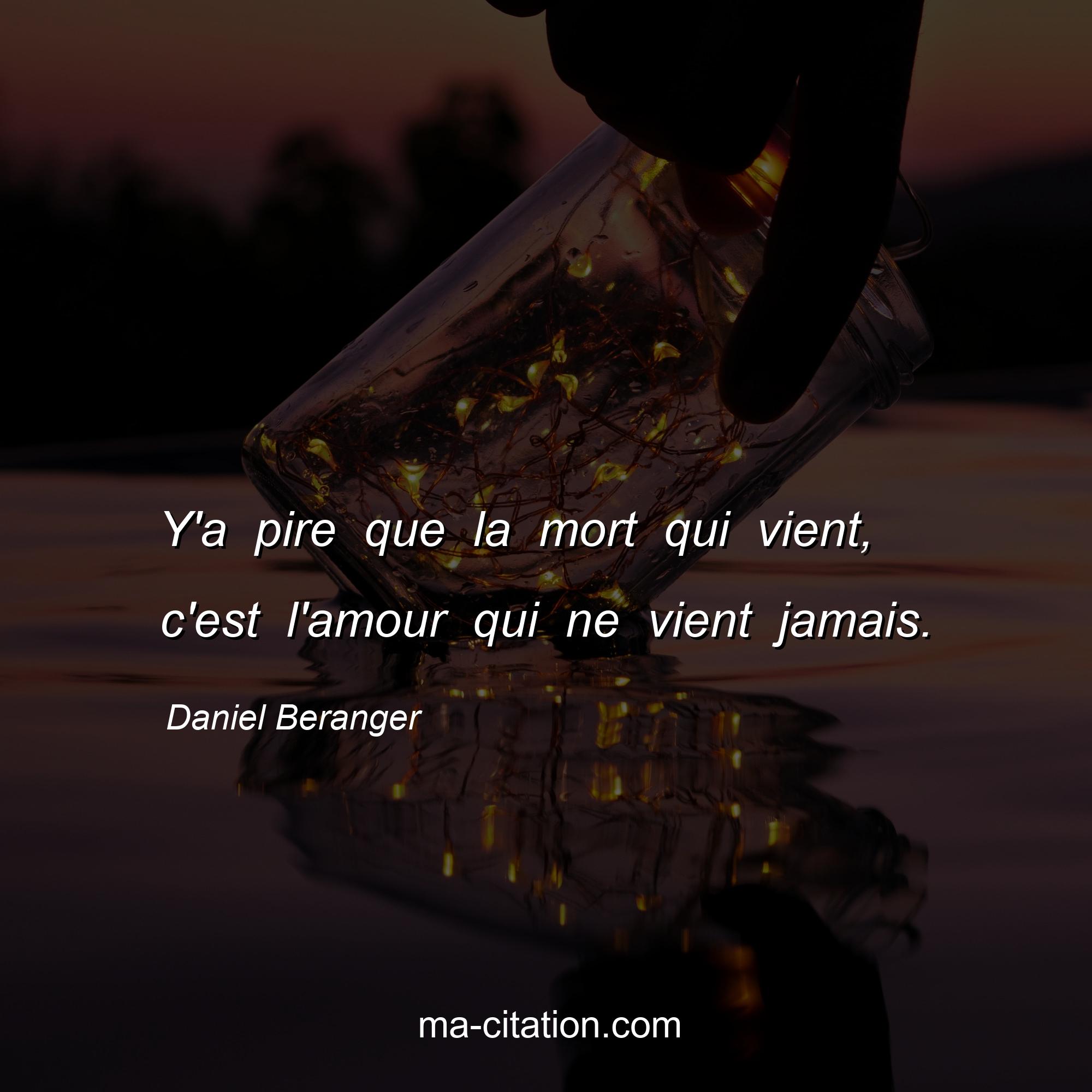 Daniel Beranger est l'auteur de la citation sur la vie "Y'a pire que la mort qui vient, c'est l'amour qui ne vient jamais.".