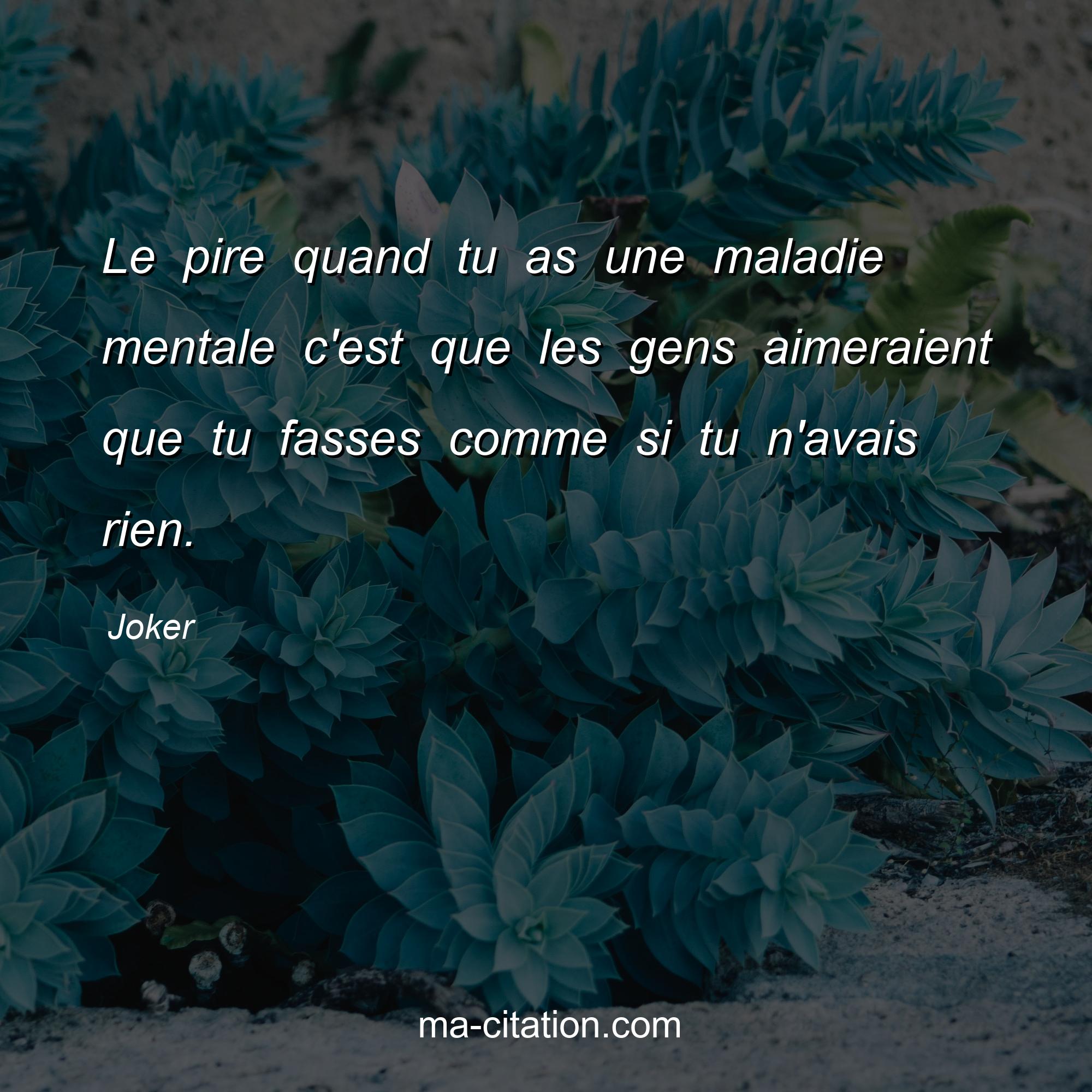 Joker est l'auteur de la citation sur la vie "Le pire quand tu as une maladie mentale c'est que les gens aimeraient que tu fasses comme si tu n'avais rien.".