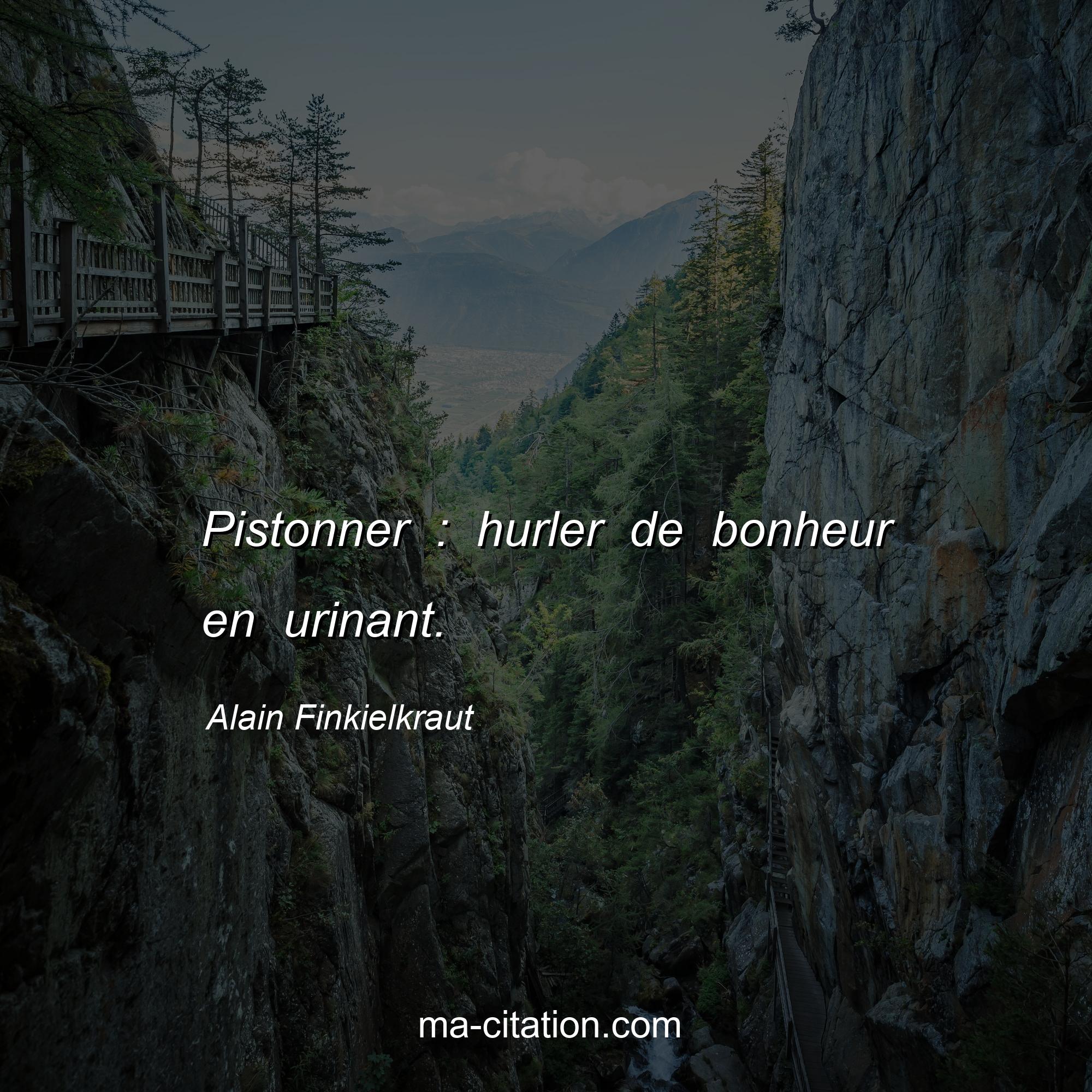Citation sur la vie d'Alain Finkielkraut :Pistonner : hurler de bonheur en urinant.