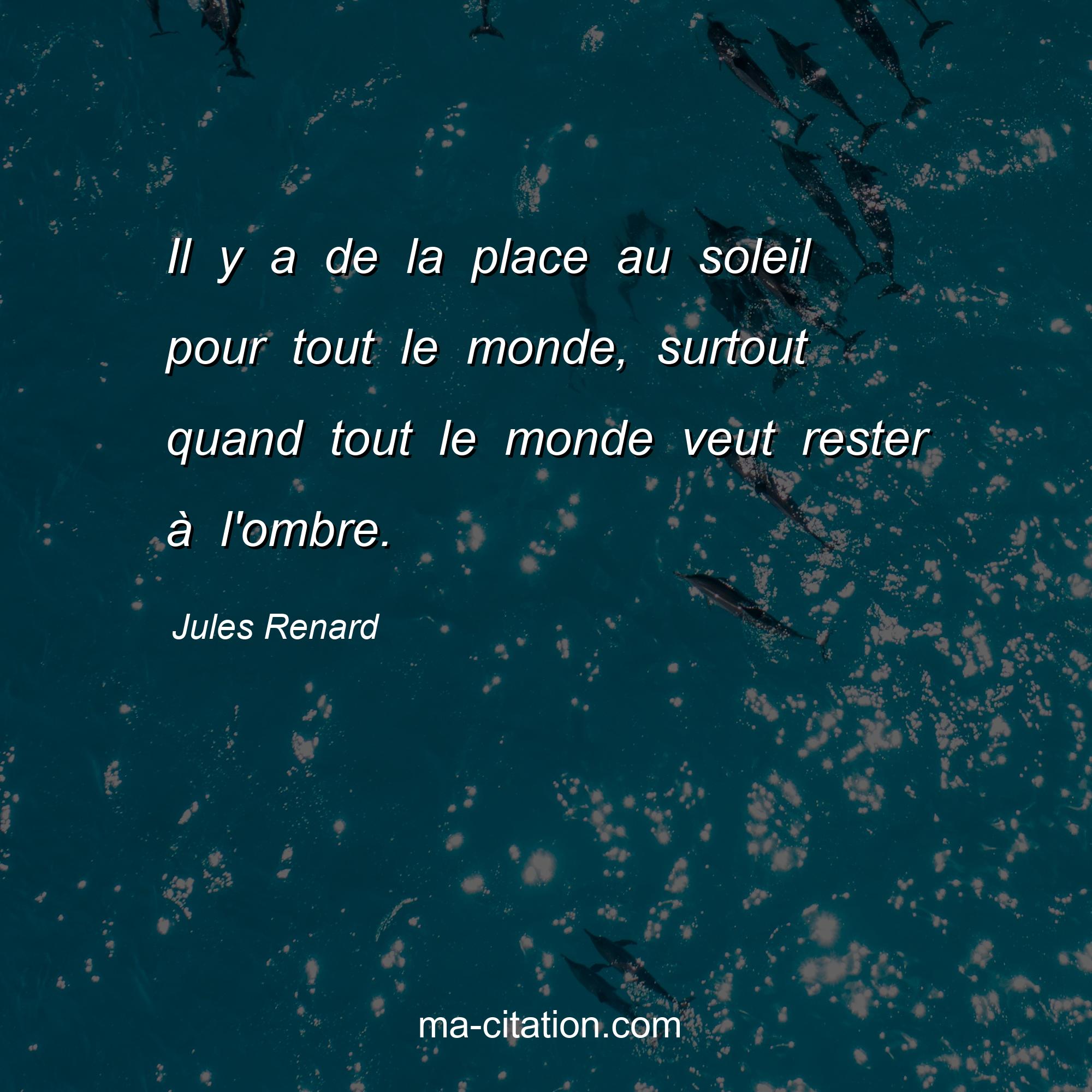 Citation sur la vie de Jules Renard :Il y a de la place au soleil pour tout le monde, surtout quand tout le monde veut rester à l'ombre.