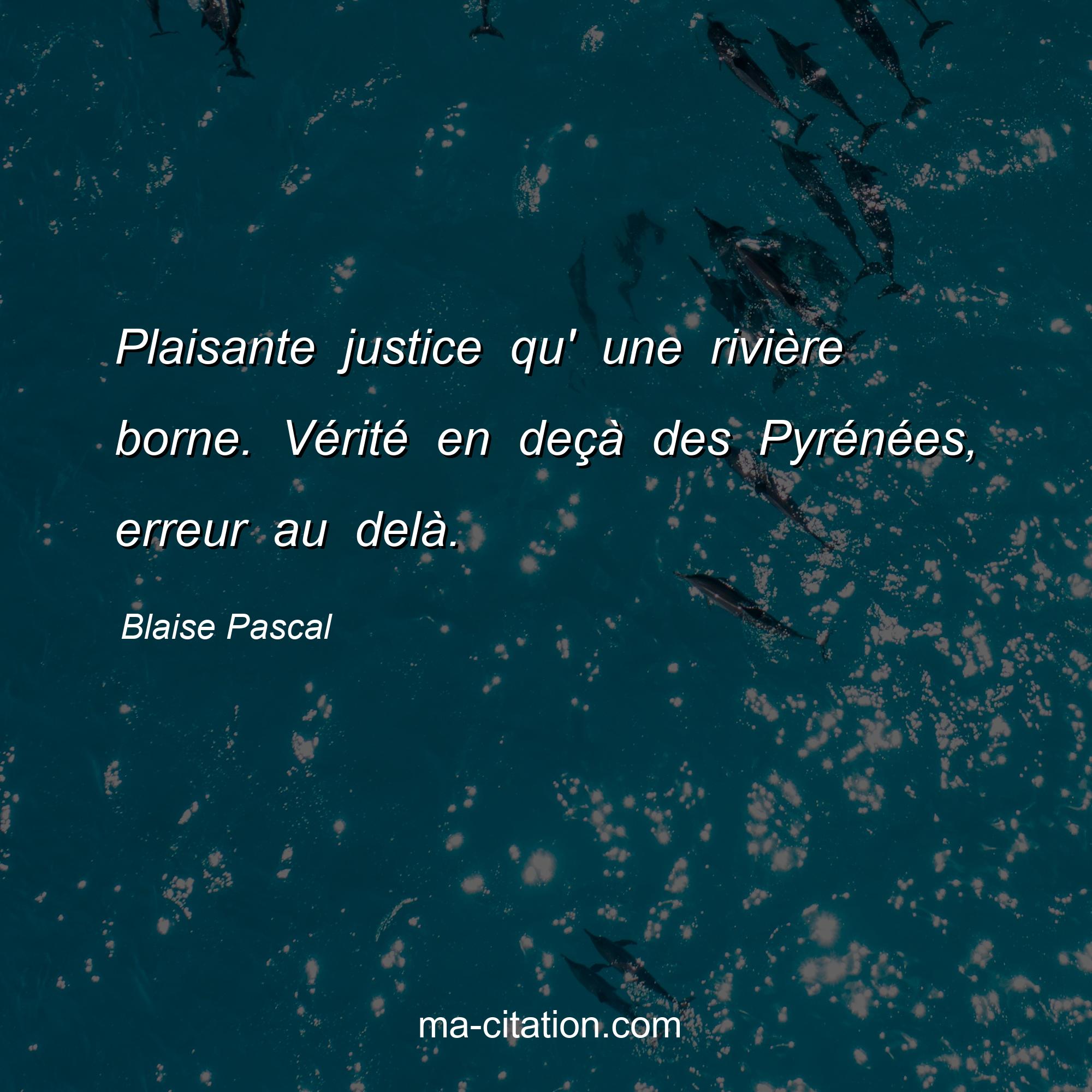 Citation sur la vie de Blaise Pascal :Plaisante justice qu' une rivière borne. Vérité en deçà des Pyrénées, erreur au delà .
