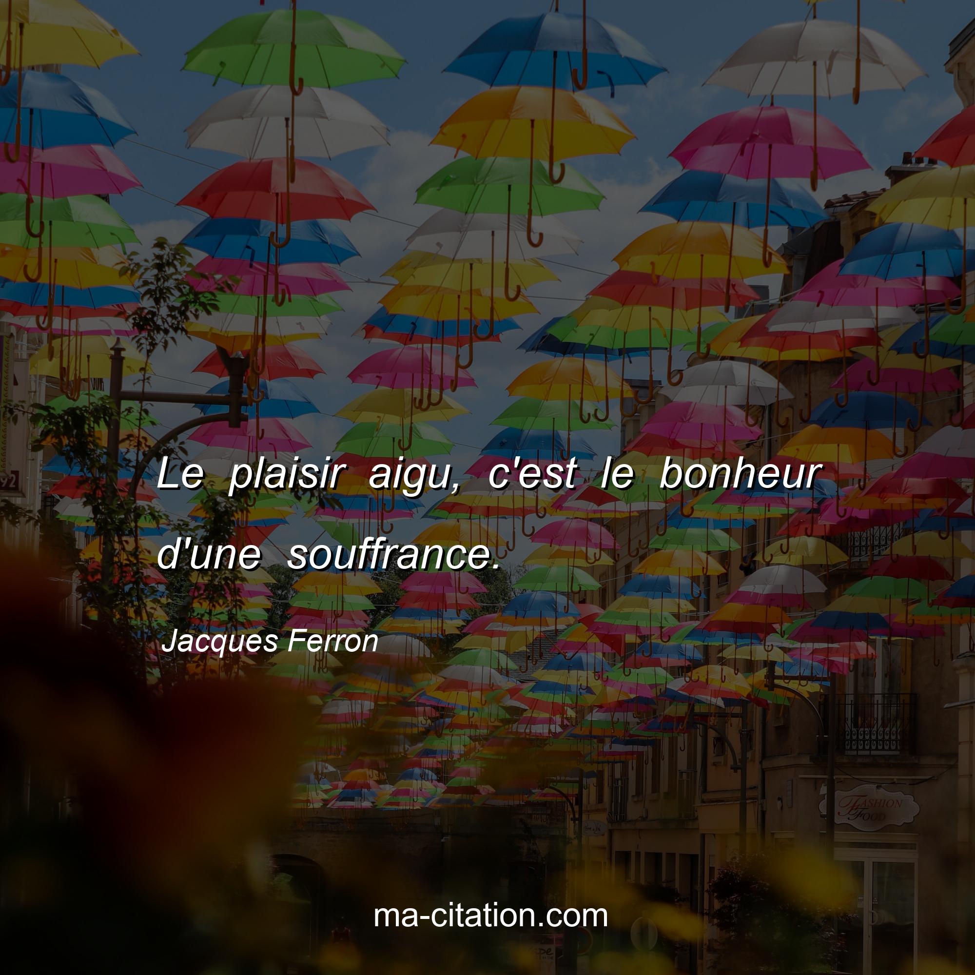 Citation sur la vie de Jacques Ferron :Le plaisir aigu, c'est le bonheur d'une souffrance.