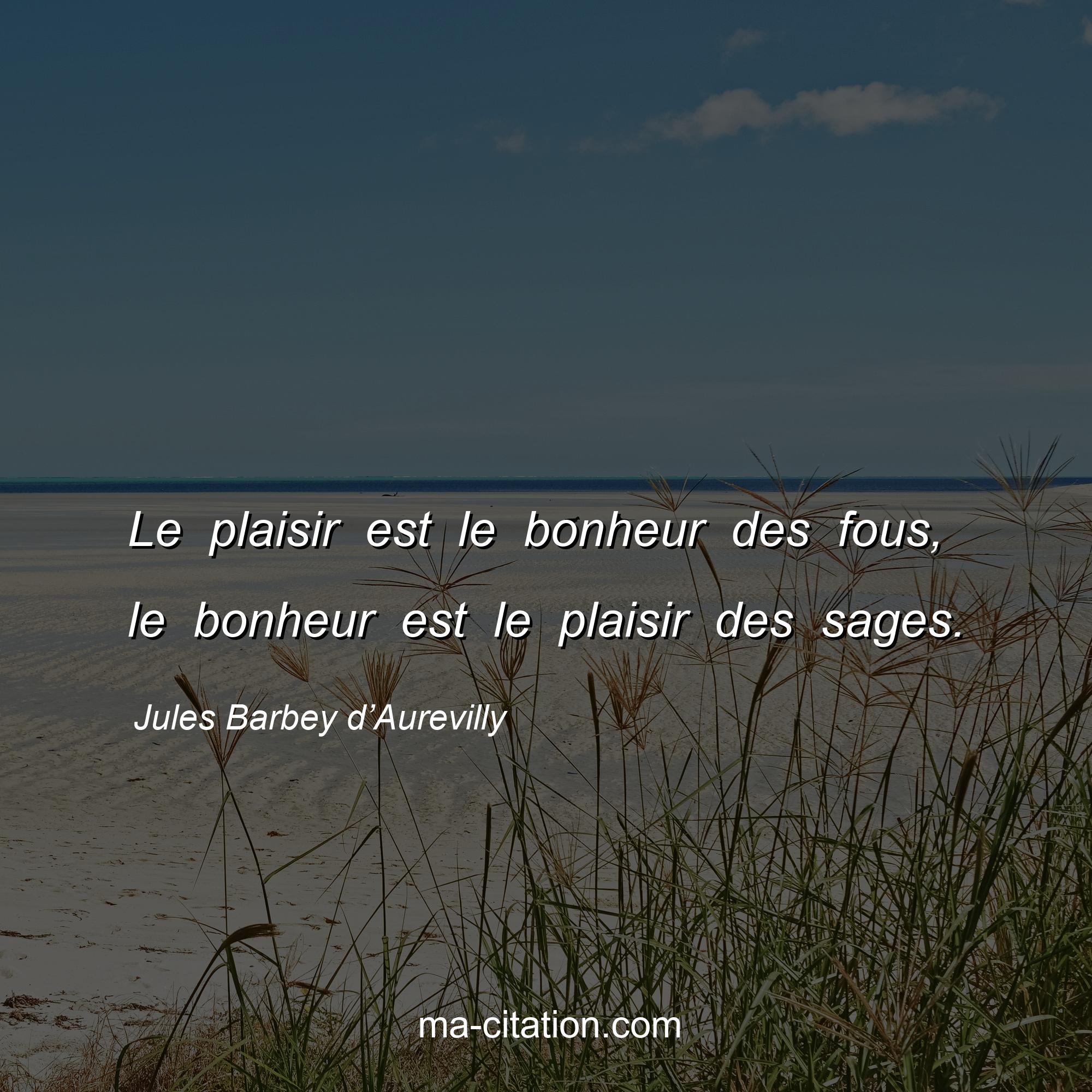Citation sur la vie de Jules Barbey d’Aurevilly :Le plaisir est le bonheur des fous, le bonheur est le plaisir des sages.