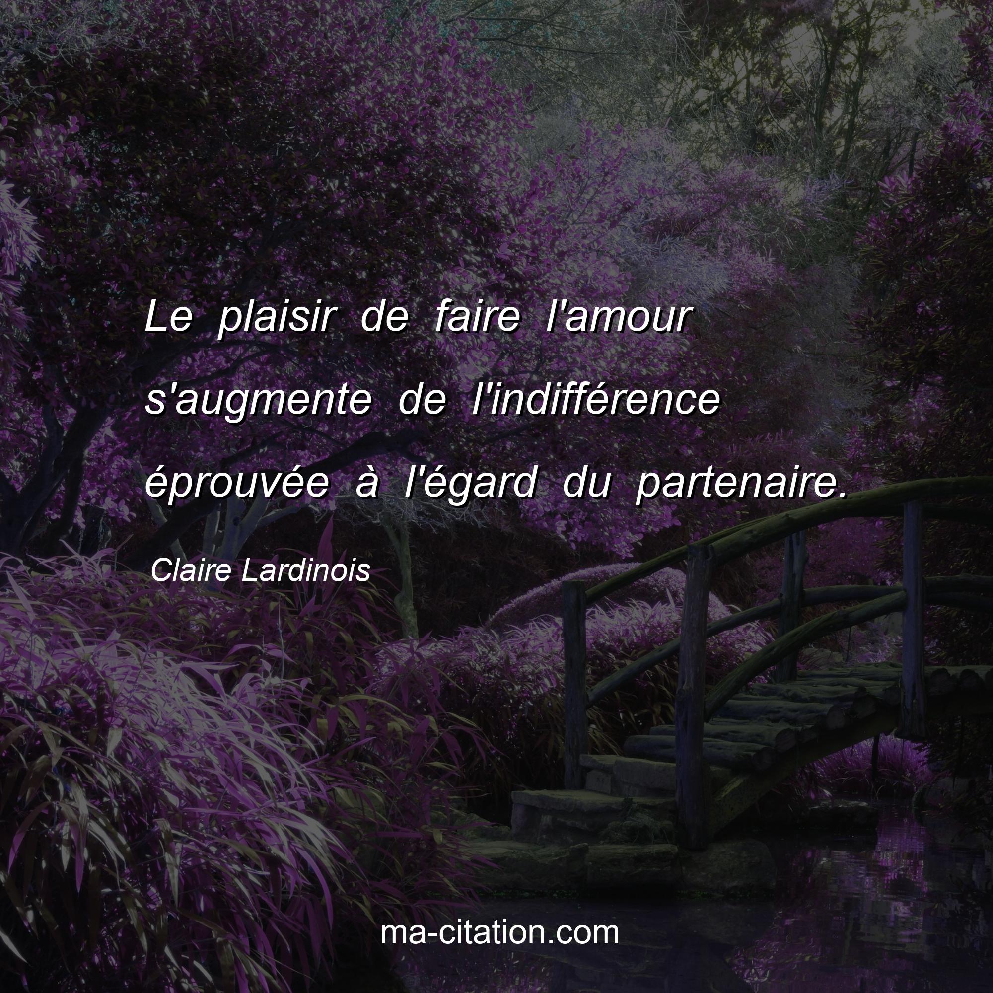 Claire Lardinois est l'auteur de la citation sur la vie "Le plaisir de faire l'amour s'augmente de l'indifférence éprouvée à l'égard du partenaire.".