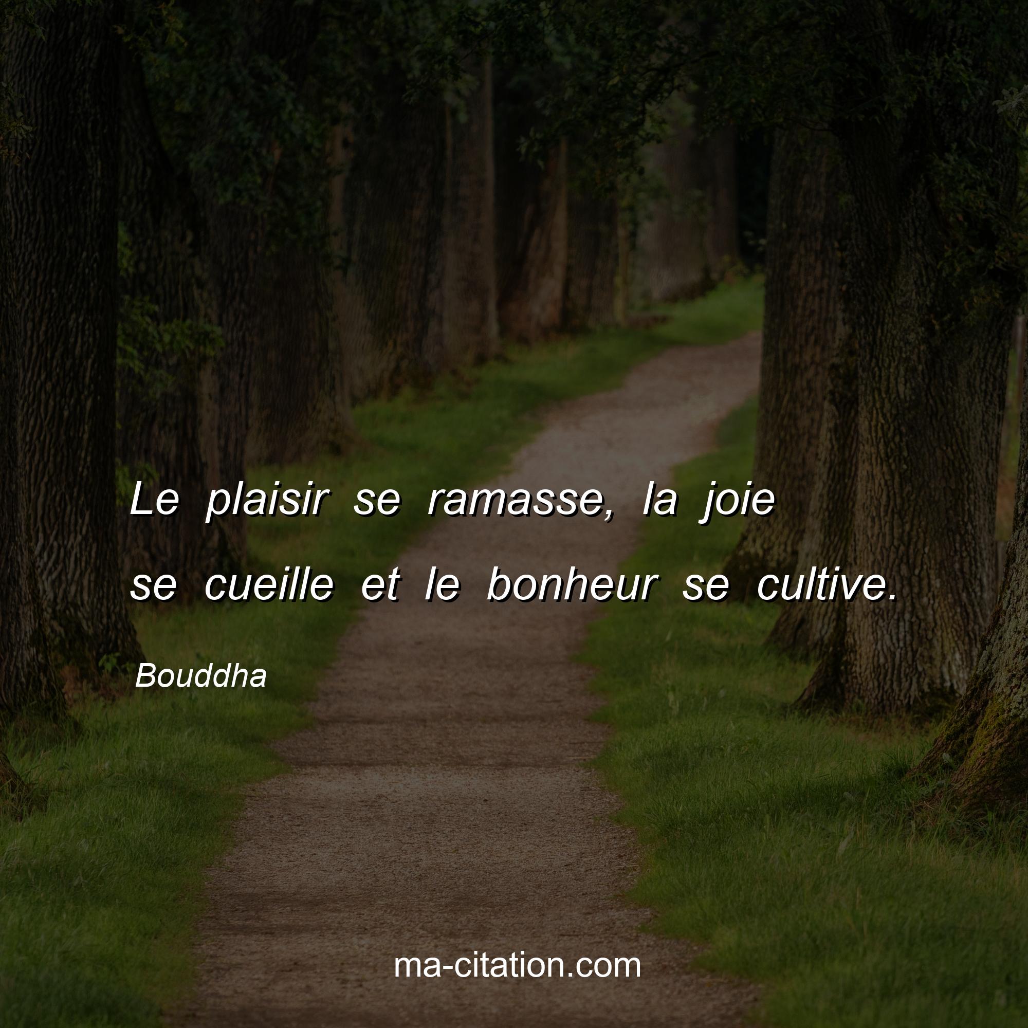 Citation sur la vie de Bouddha :Le plaisir se ramasse, la joie se cueille et le bonheur se cultive.