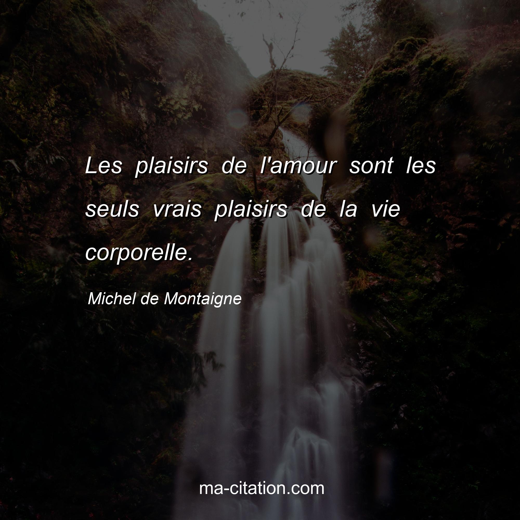 Citation sur la vie de Michel de Montaigne :Les plaisirs de l'amour sont les seuls vrais plaisirs de la vie corporelle.