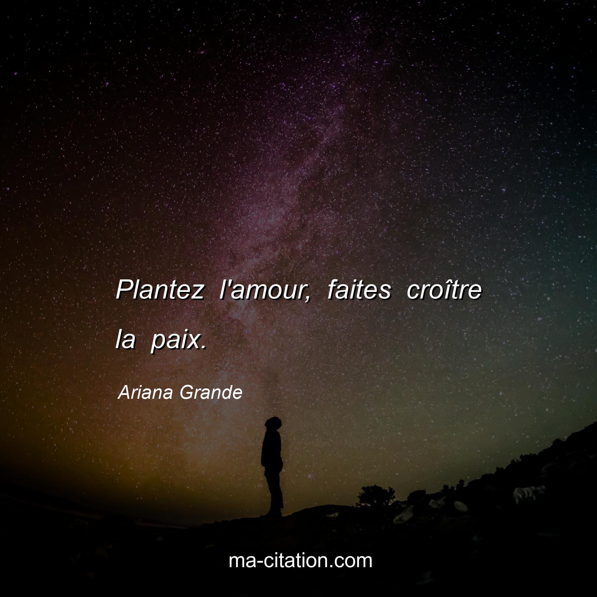 Citation sur la vie d'Ariana Grande :Plantez l'amour, faites croître la paix.