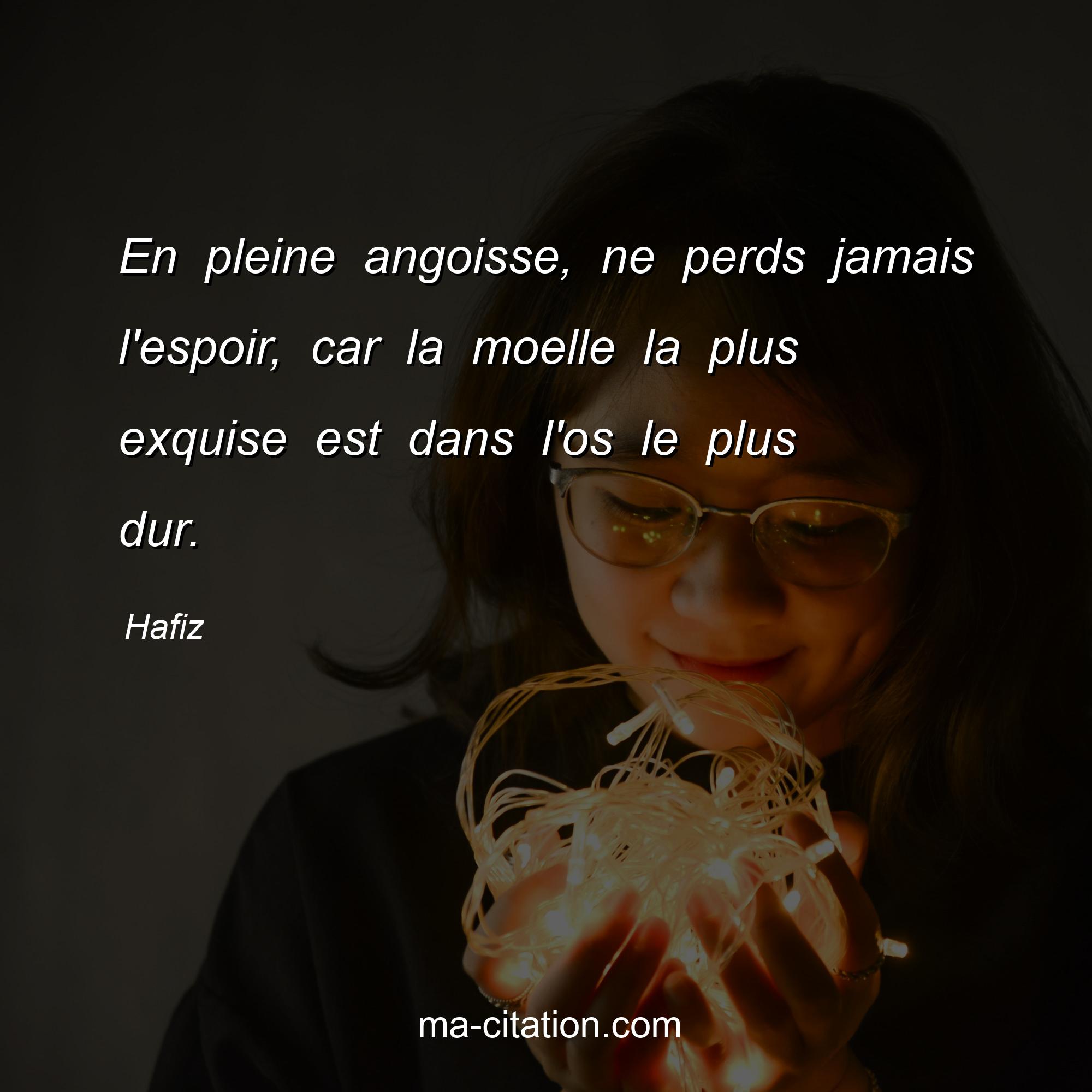 Citation sur la vie de Hafiz :En pleine angoisse, ne perds jamais l'espoir, car la moelle la plus exquise est dans l'os le plus dur.