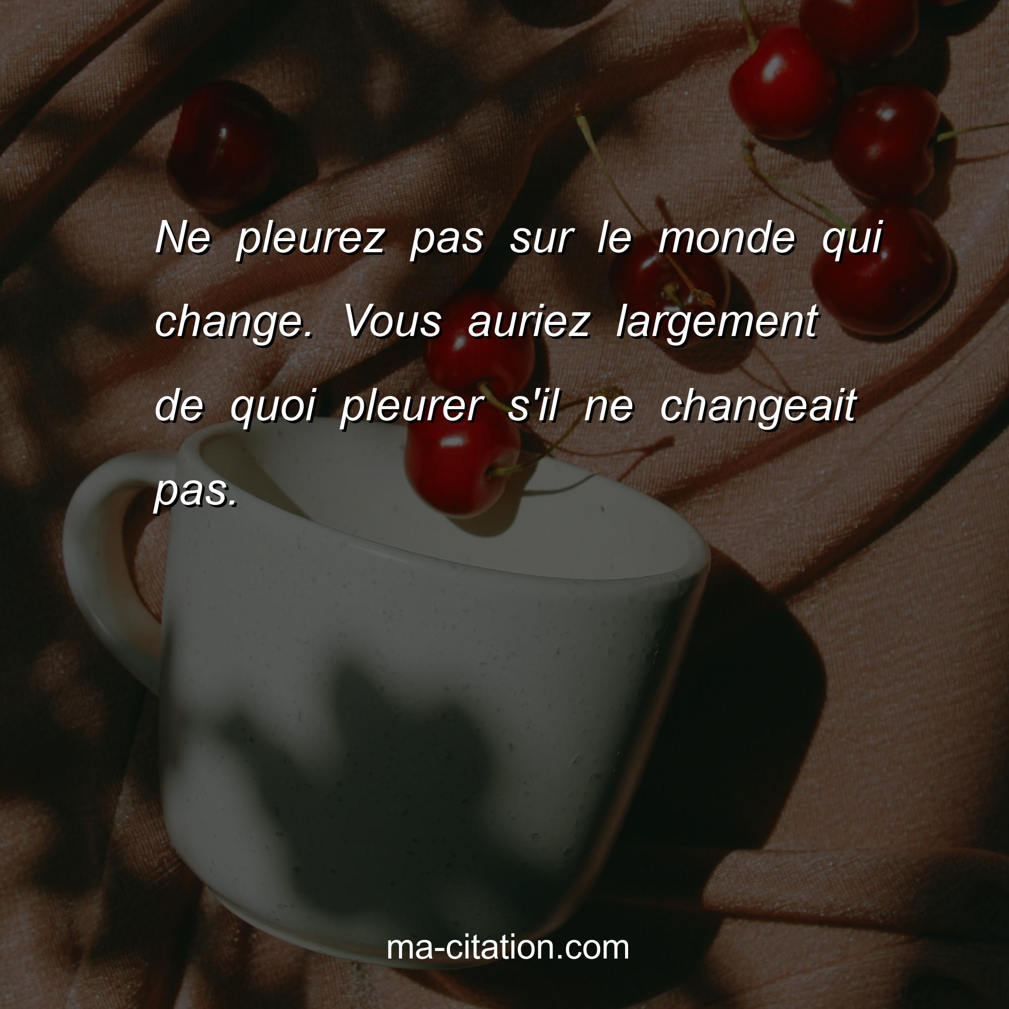 Ne pleurez pas sur le monde qui change. Vous auriez largement de quoi pleurer s'il ne changeait pas.