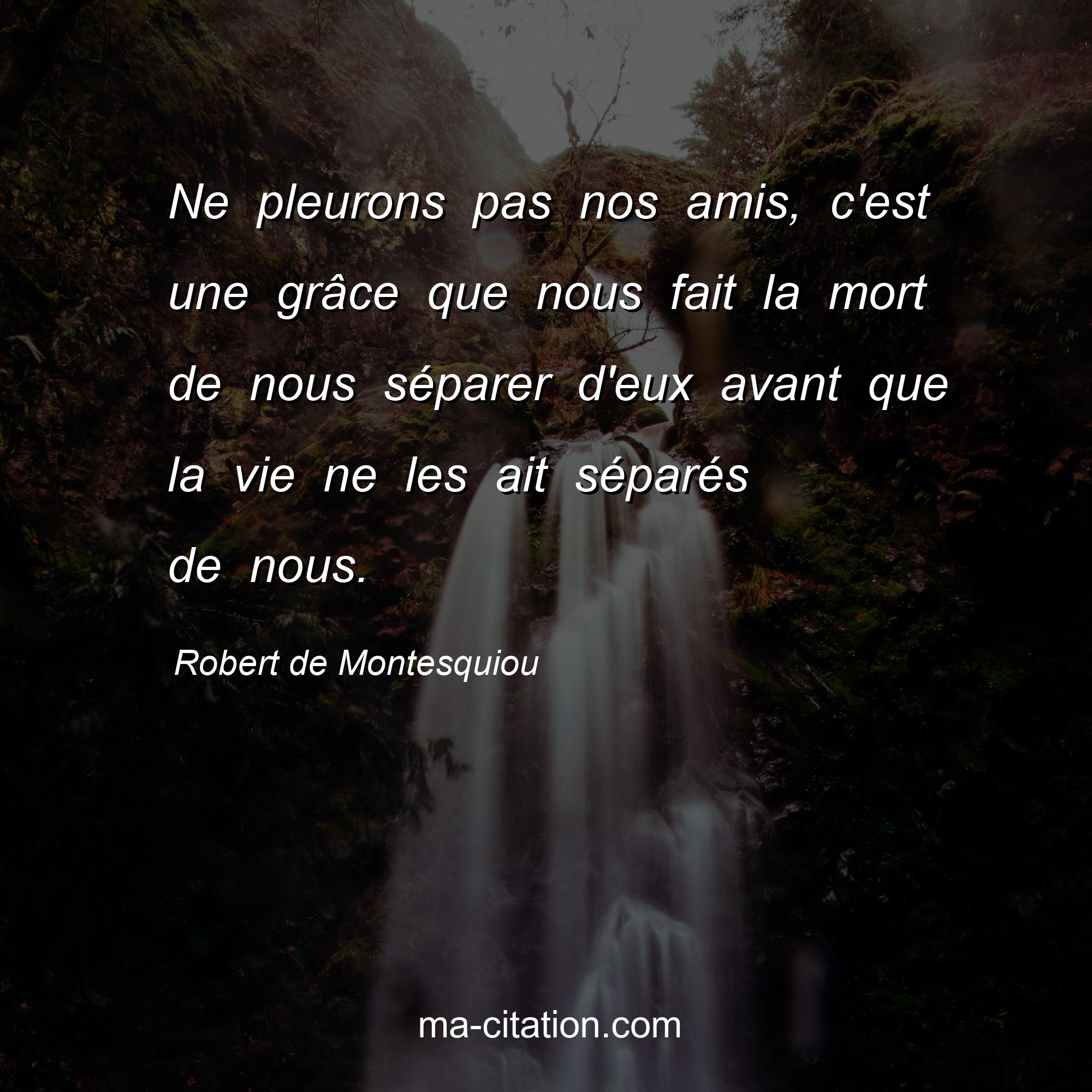 Citation sur la vie de Robert de Montesquiou :Ne pleurons pas nos amis, c'est une grâce que nous fait la mort de nous séparer d'eux avant que la vie ne les ait séparés de nous.