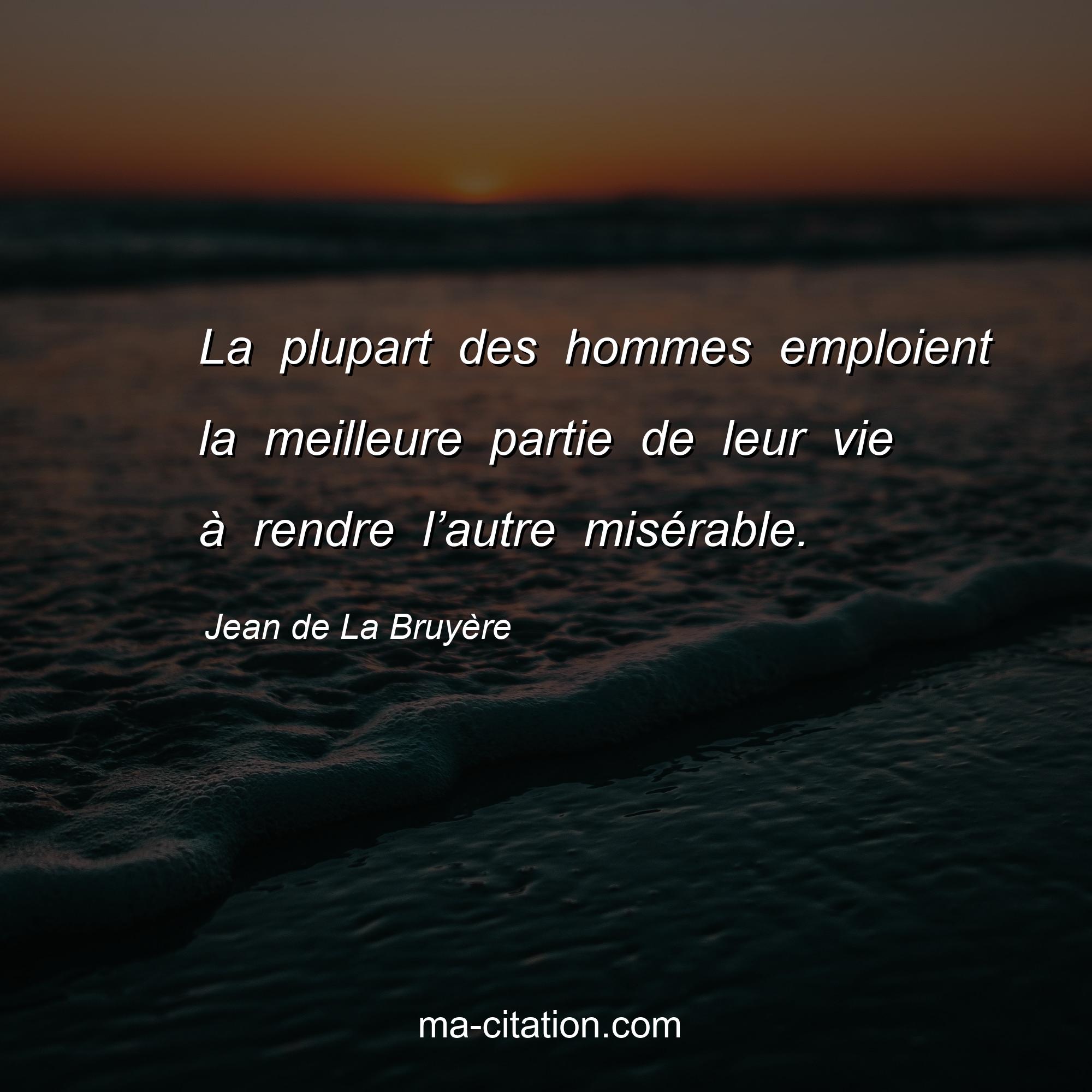Citation sur la vie de Jean de La Bruyère :La plupart des hommes emploient la meilleure partie de leur vie à rendre l’autre misérable.