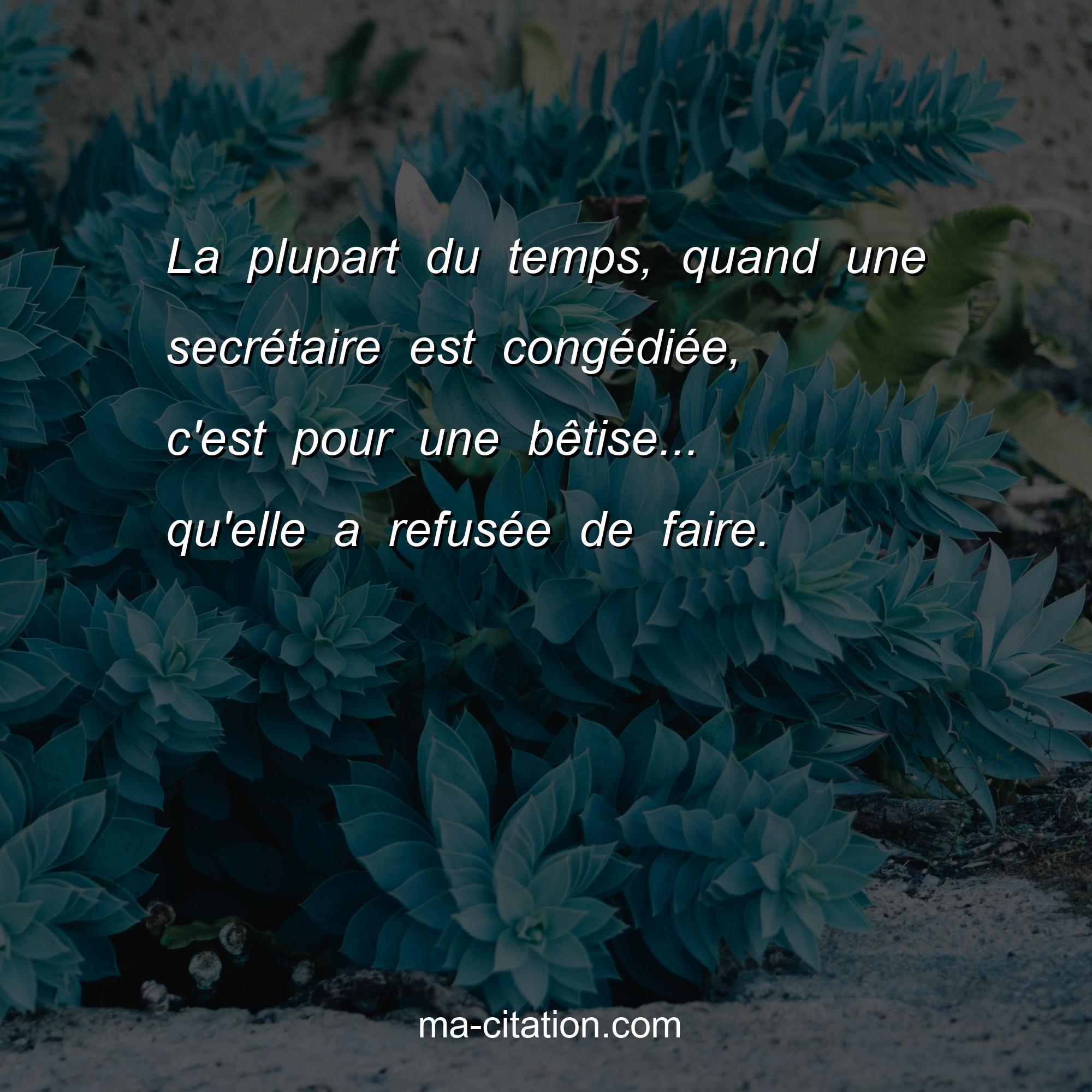 Citation sur la vie :La plupart du temps, quand une secrétaire est congédiée, c'est pour une bêtise... qu'elle a refusée de faire.