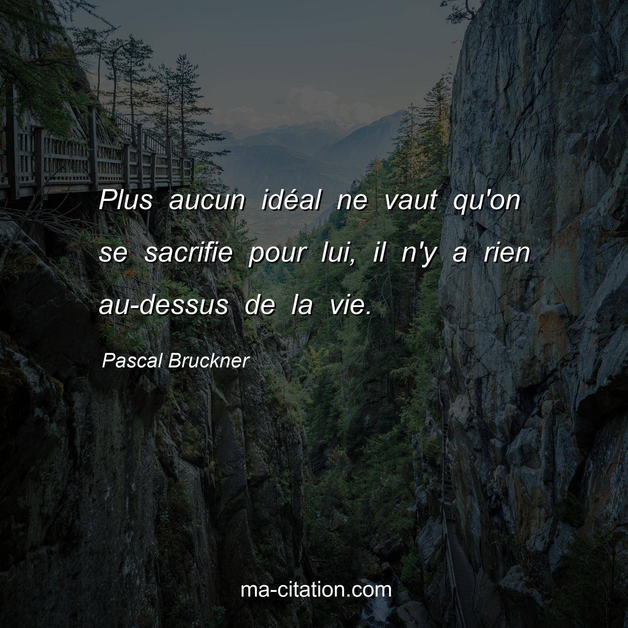 Pascal Bruckner est l'auteur de la citation sur la vie "Plus aucun idéal ne vaut qu'on se sacrifie pour lui, il n'y a rien au-dessus de la vie.".
