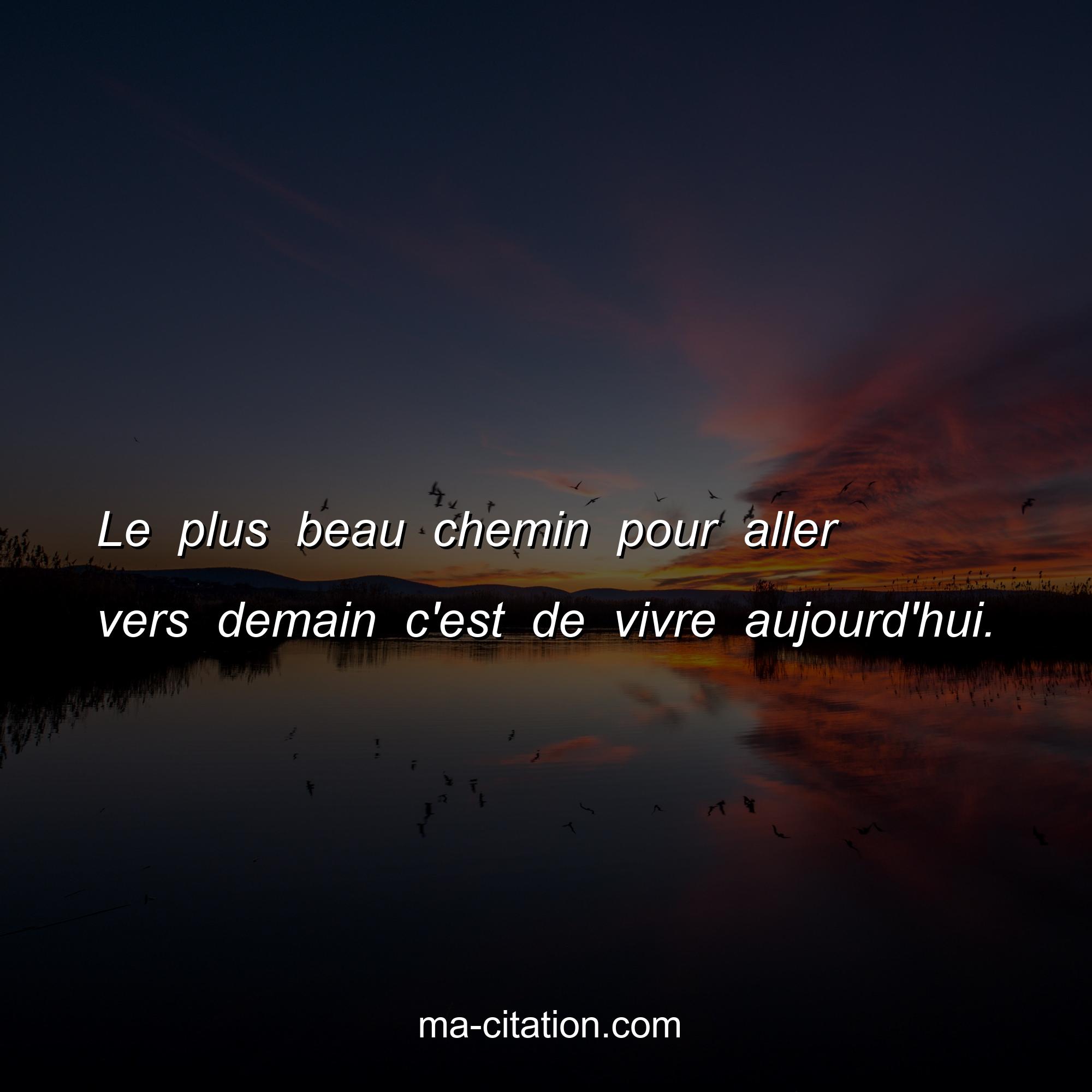 Le plus beau chemin pour aller vers demain c'est de vivre aujourd'hui.