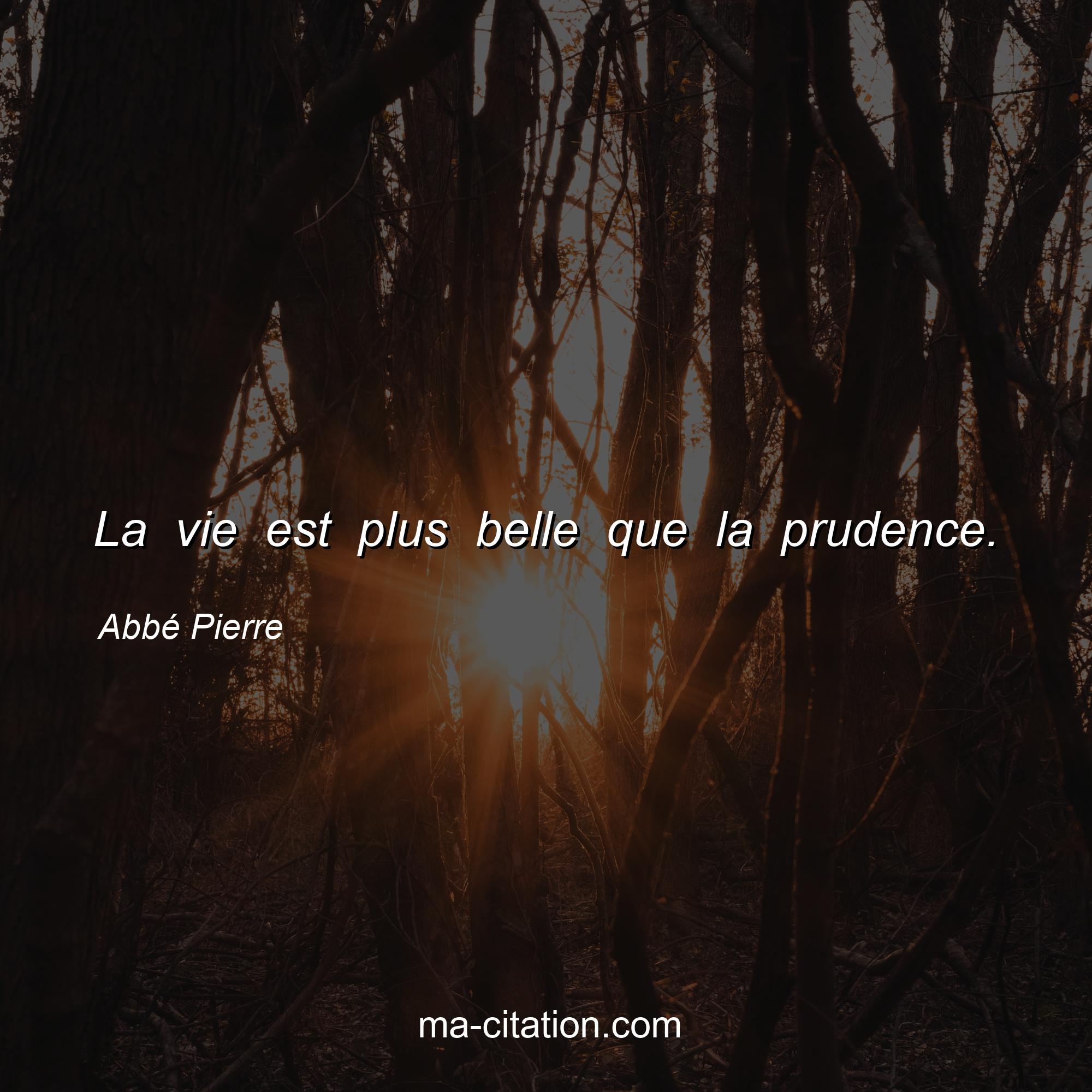 Citation sur la vie d'Abbé Pierre :La vie est plus belle que la prudence.