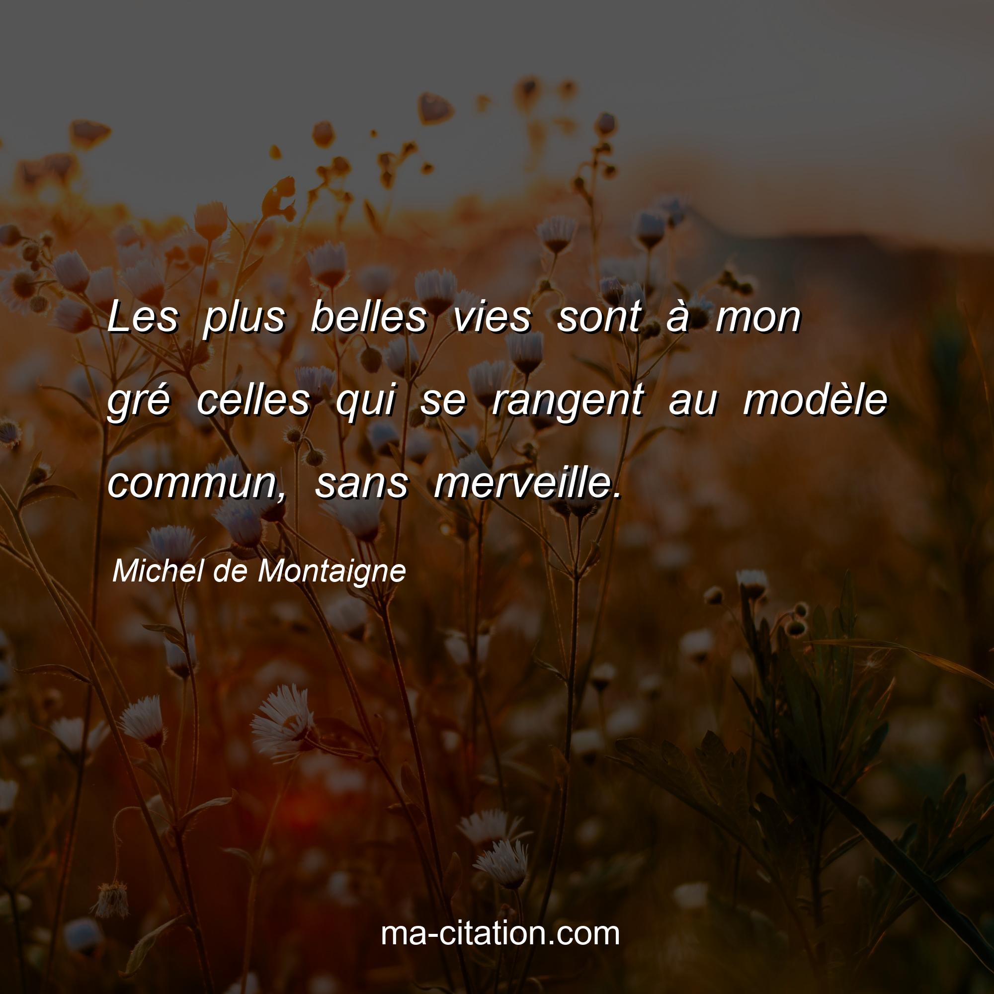 Citation sur la vie de Michel de Montaigne :Les plus belles vies sont à mon gré celles qui se rangent au modèle commun, sans merveille.
