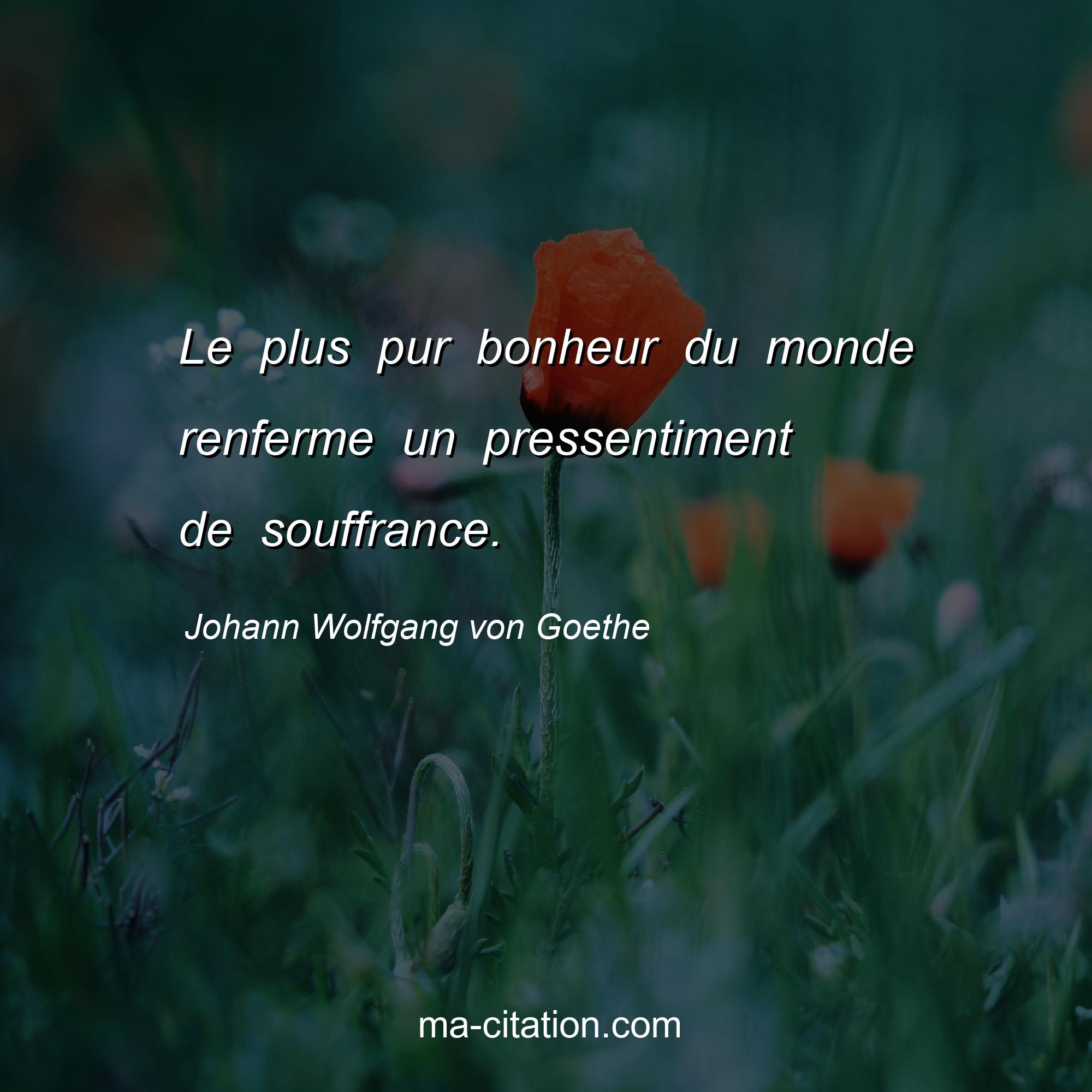 Citation sur la vie de Johann Wolfgang von Goethe :Le plus pur bonheur du monde renferme un pressentiment de souffrance.