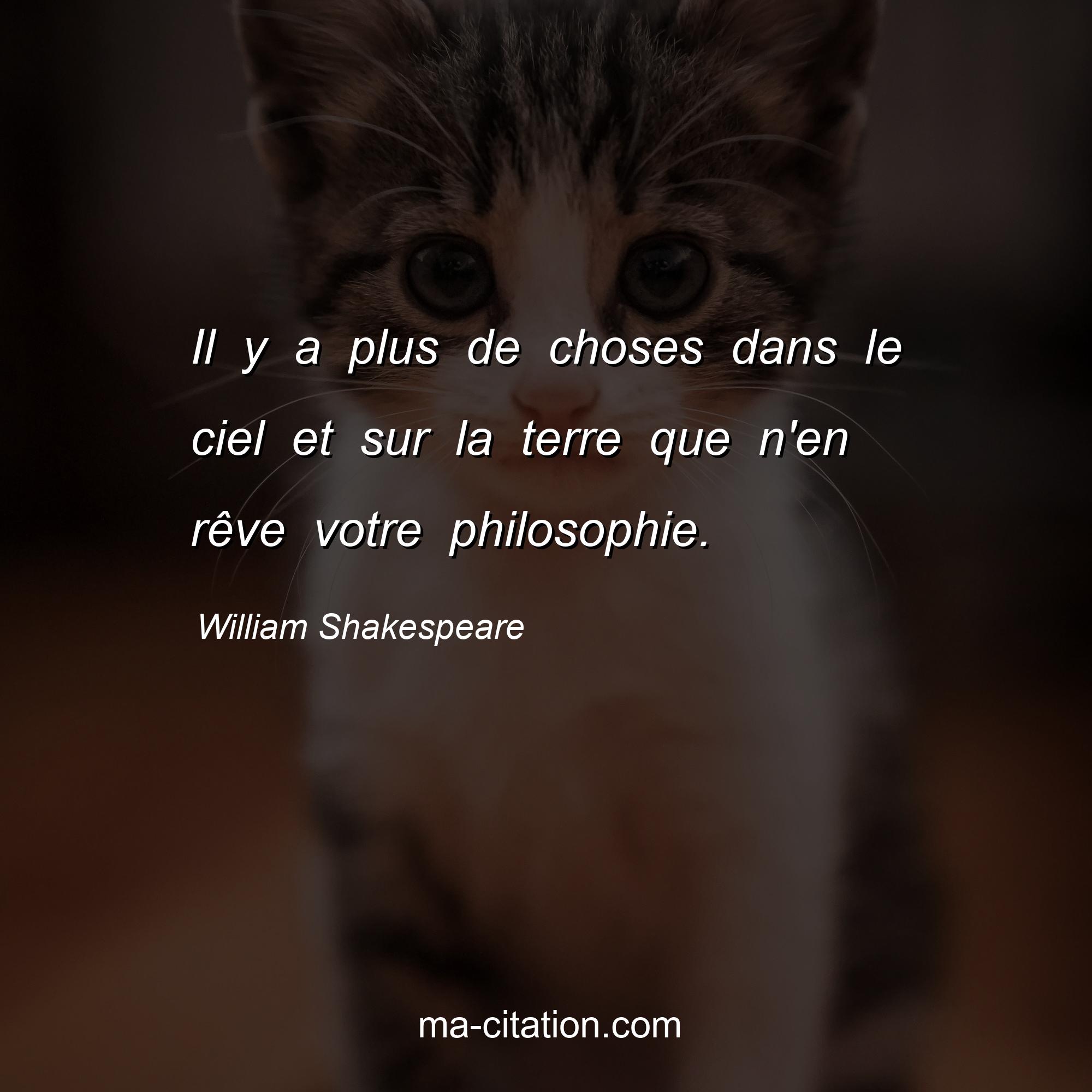 Citation sur la vie de William Shakespeare :Il y a plus de choses dans le ciel et sur la terre que n'en rêve votre philosophie.